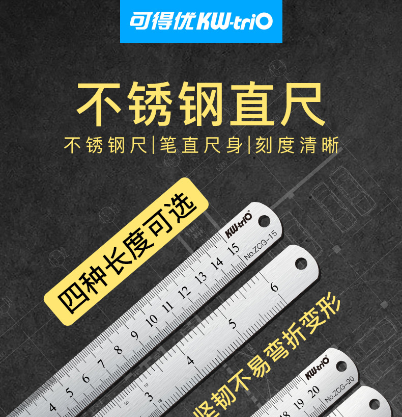 Kedeyu (KW-triO)15 20 30 50cm no óxido de metal de acero inoxidable regla Regla de hierro recto