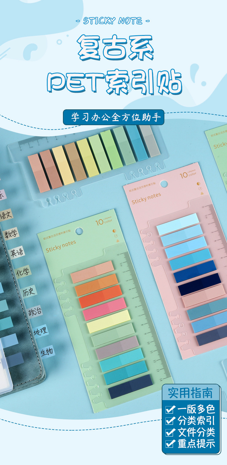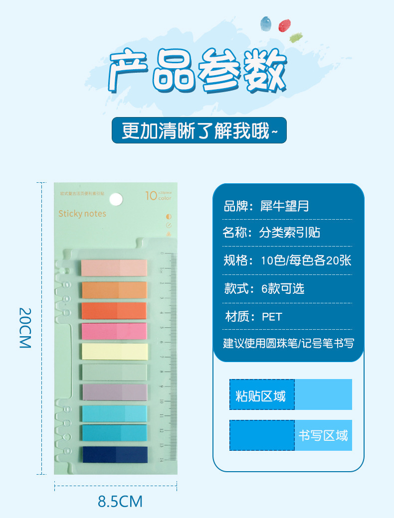Pegatinas de índice de hojas sueltas de PET de venta caliente Pegatinas de notas adhesivas de color de color de color ins