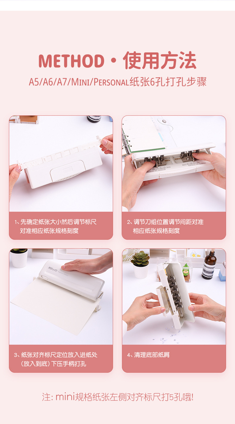 Perforadora múltiple Kedeyou M5, perforadora de metal para manual A6, perforadora ajustable para libros de hojas sueltas de seis orificios
