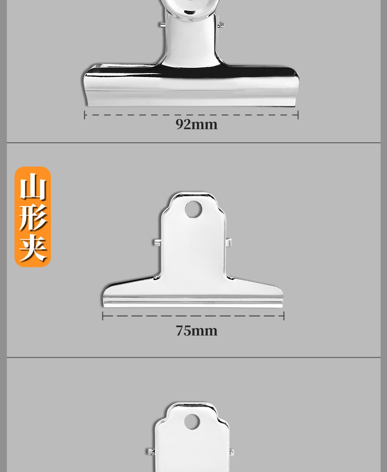 | Especificaciones | Clips redondos de 22mm, Clips redondos de 31mm, Clips redondos de 38mm, Clips redondos de 50mm, Clips redondos de 63mm, Clips redondos de 75mm, Clips redondos de 90mm, Clips de montaña de 100mm, Clips de montaña de 120mm, Clips de montaña de 145mm, Clips de montaña de 160mm, Clips de montaña de 180mm |