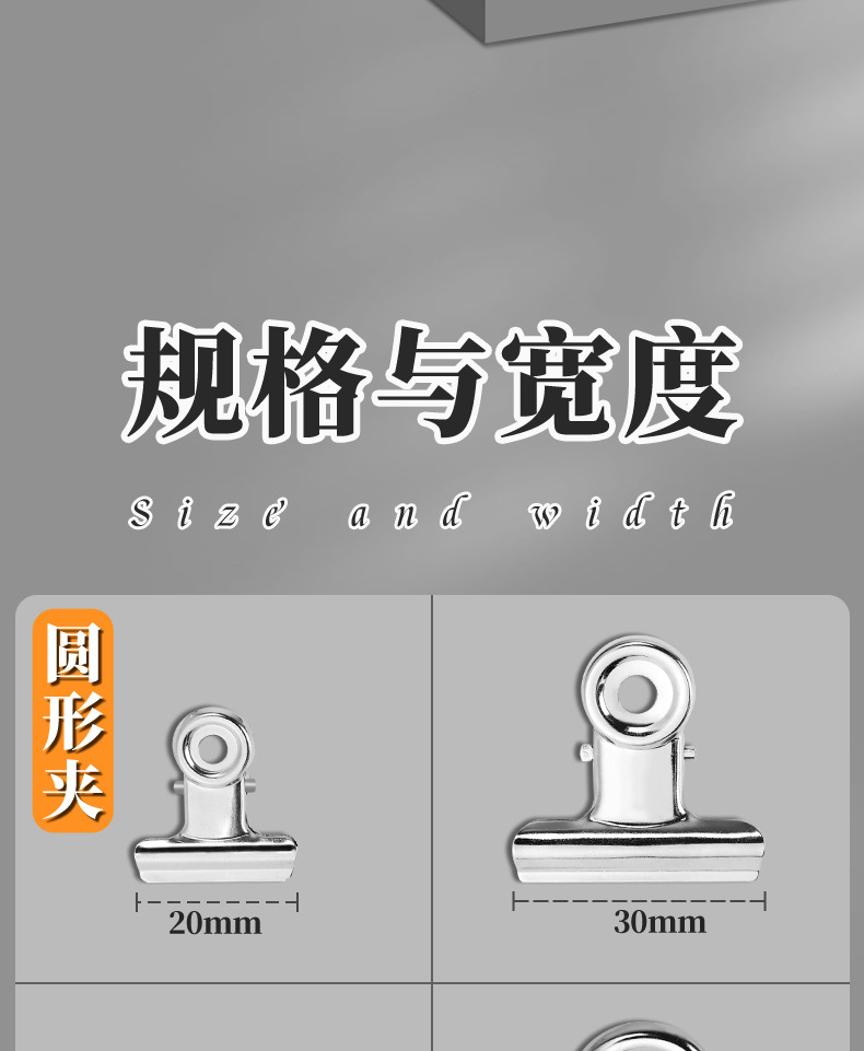 Acero inoxidable abrazadera circular de hierro fuerte multi-especificación abrazadera de papelería carpeta de facturas de oficina