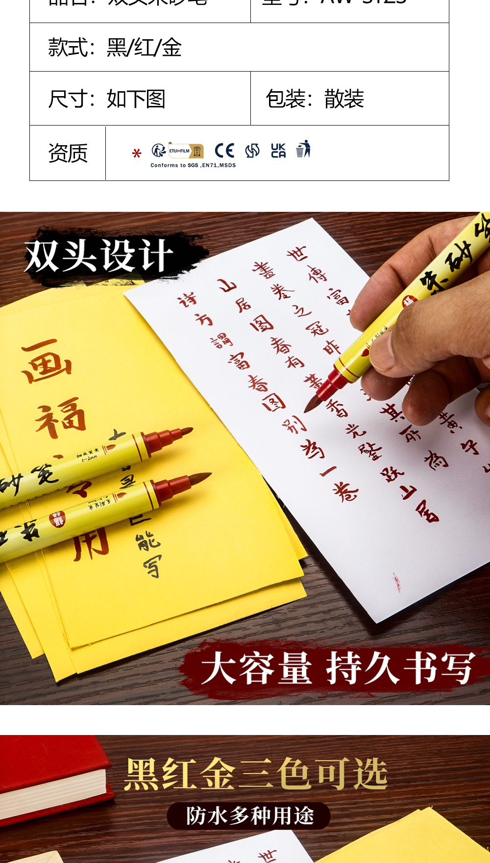 Pincel de cintabrio de doble cabeza, pincel de dibujo, pincel de caligrafía de doble cabeza, pincel de cintabrio de doble cabeza, pincel de caligrafía de doble cabeza