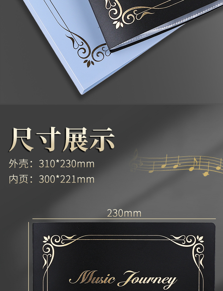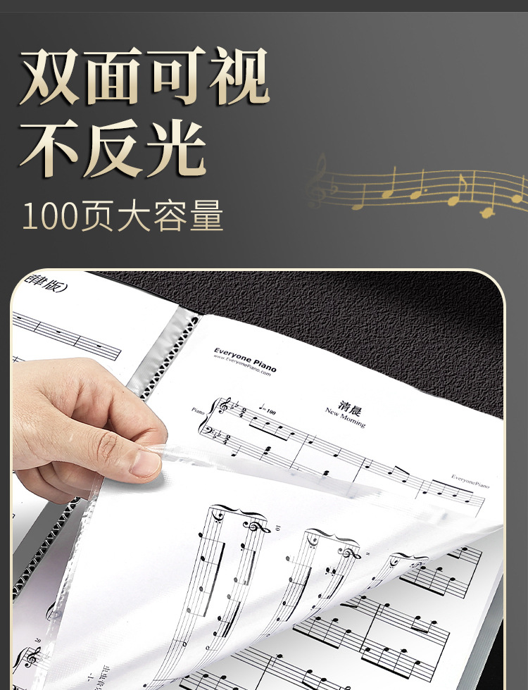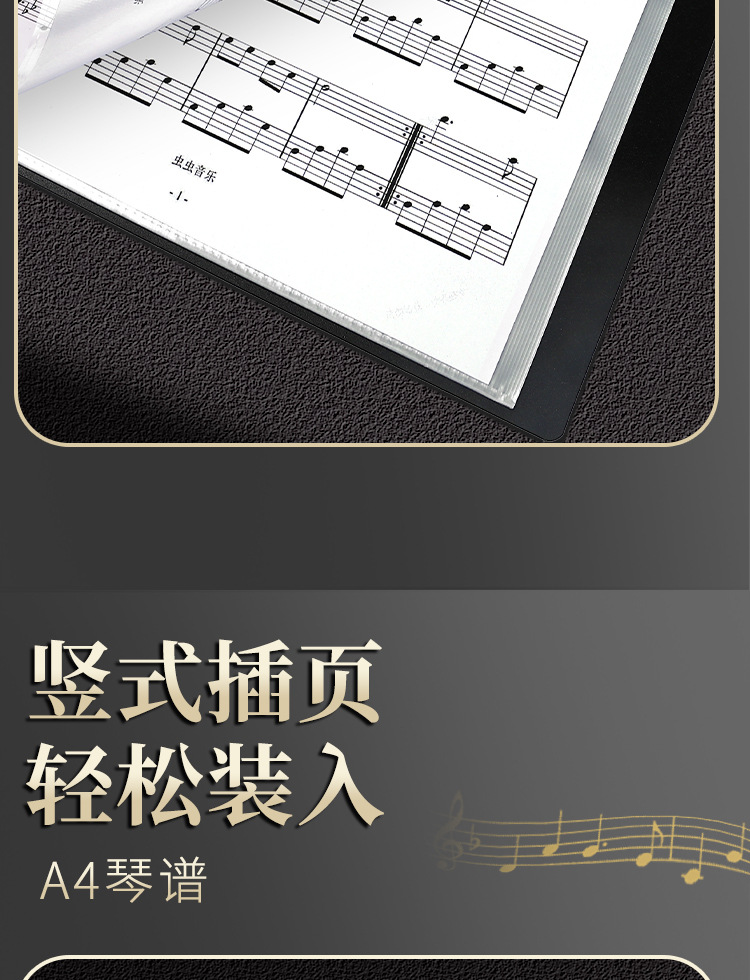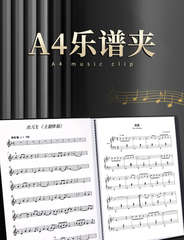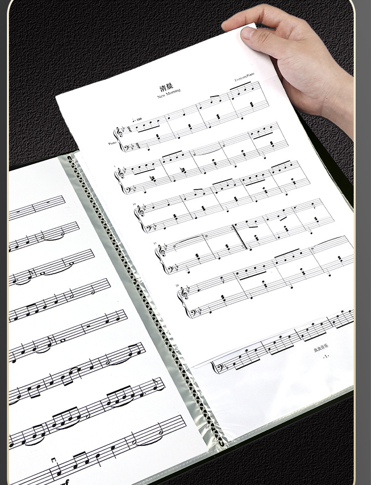 Carpeta de partituras de música Clip de libro de partituras de estudiante Partitura de piano A4 Folleto de información Inserto Bolsa de archivos Piano Canciones Clip