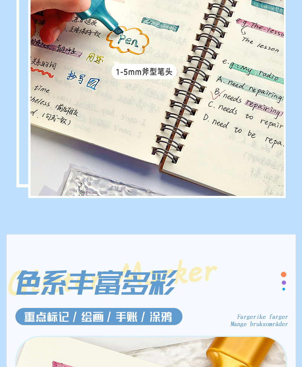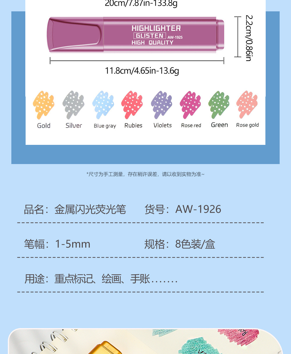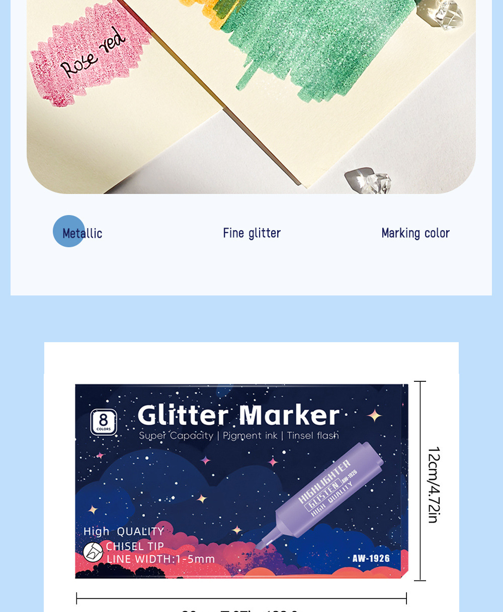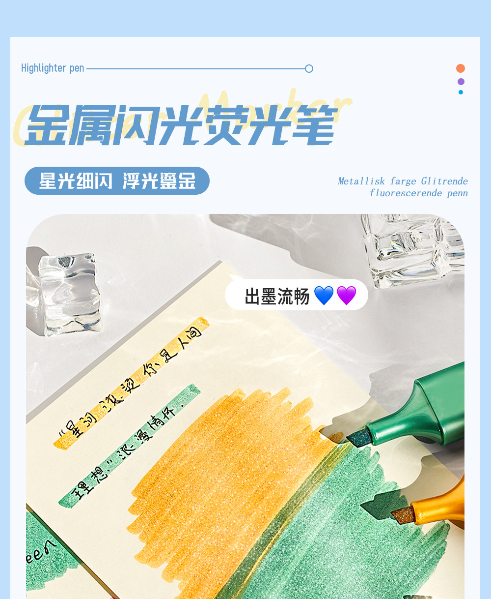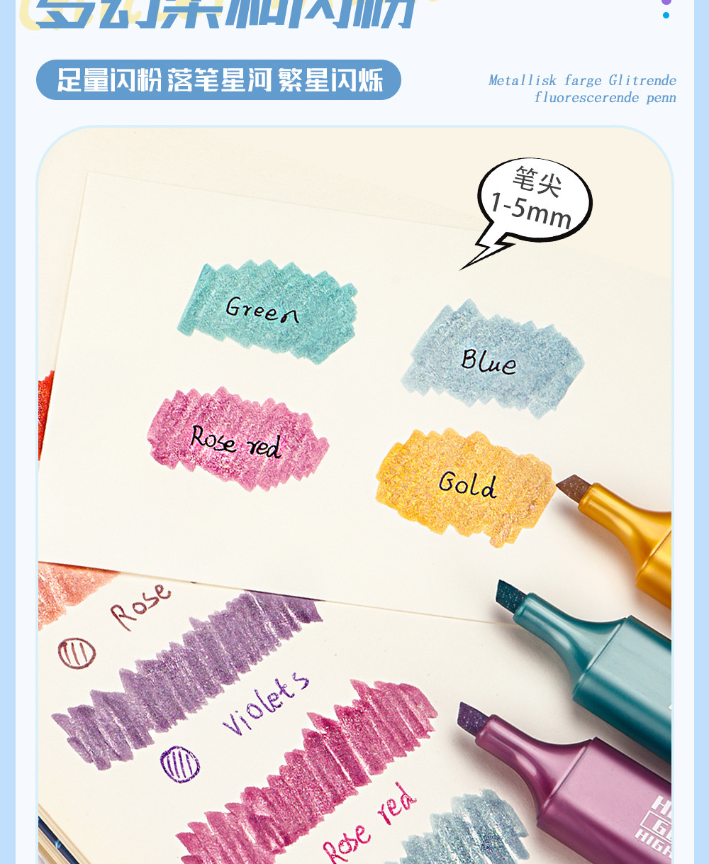 Transfronteriza venta caliente metal flash resaltador de gran capacidad resaltador de polvo de flash marcador DIY cuentas de mano necesarias