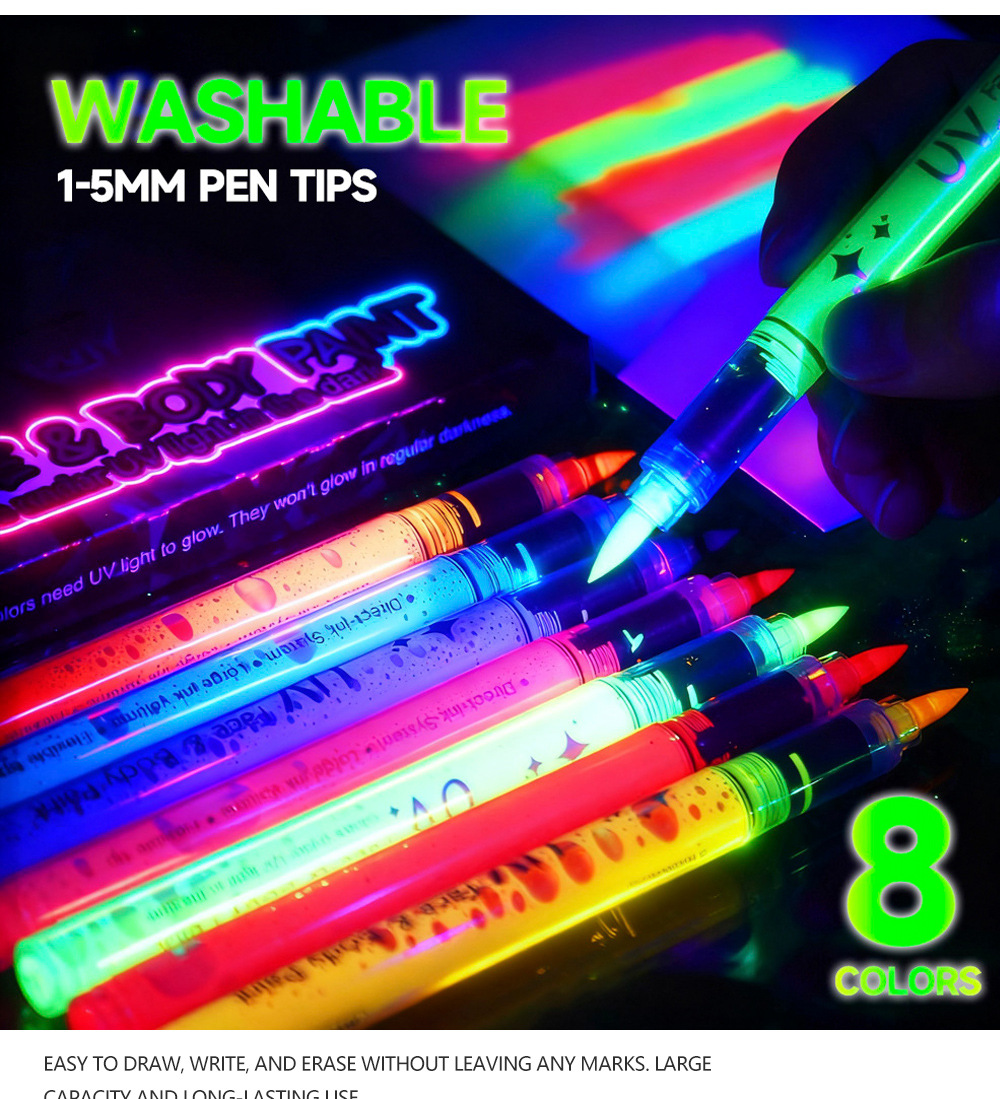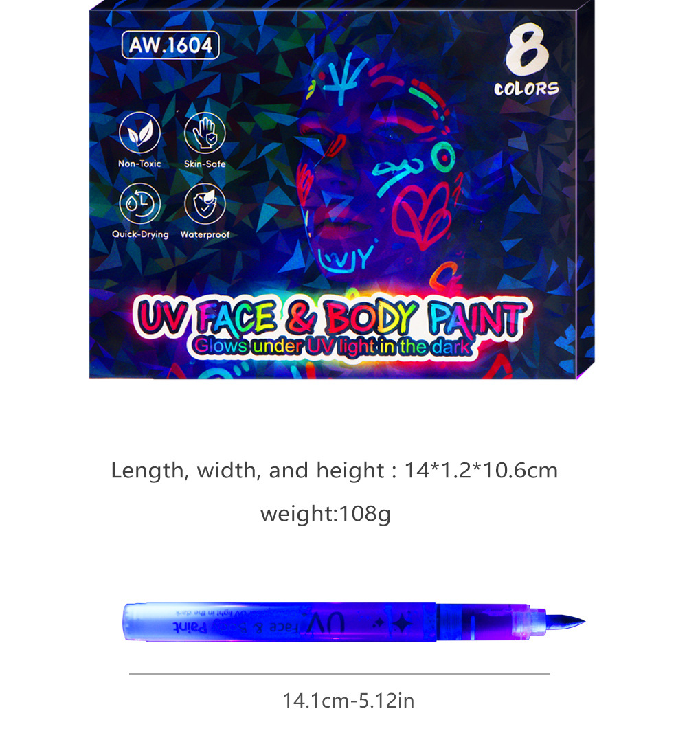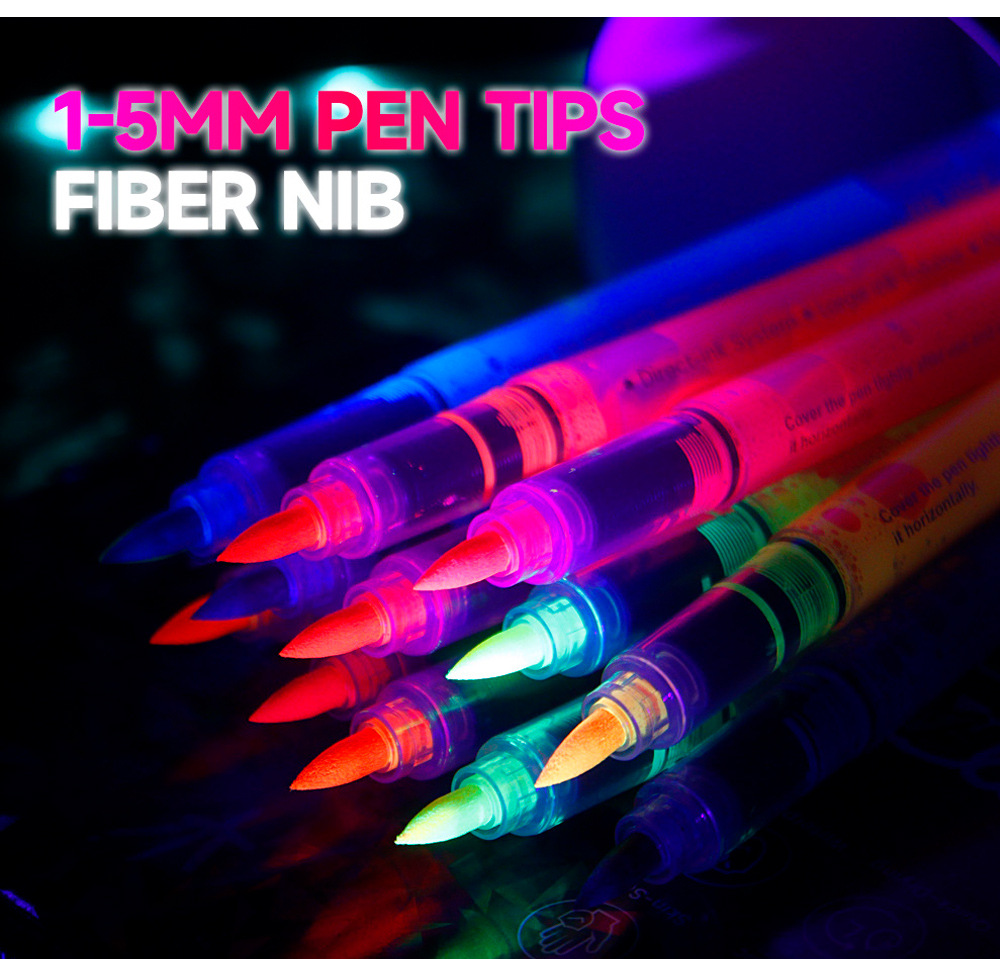 Ventas transfronterizas calientes líquidas directas pen luminiscente UV acuarela pen concierto pen marcador de pintura corporal de Halloween en stock