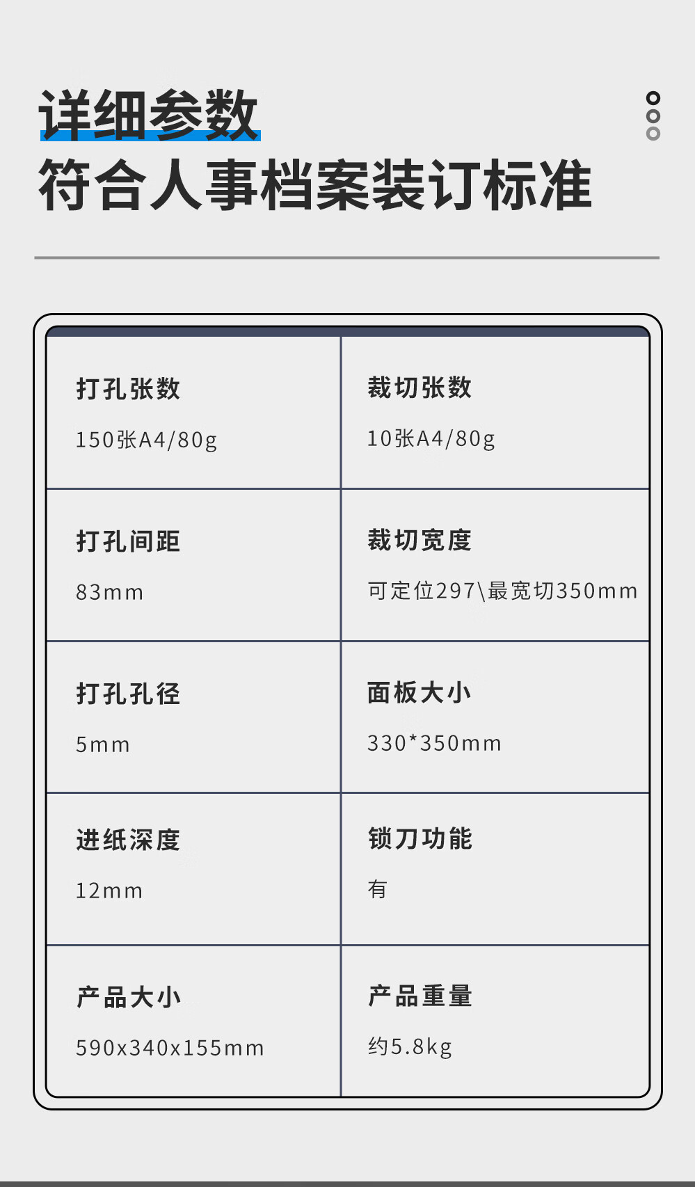 Punzonadora de tres orificios Kedeyou, caja de archivo de personal de cuadro de 83mm, perforadora especial, perforadora de hojas sueltas, cuchillo de corte de papel