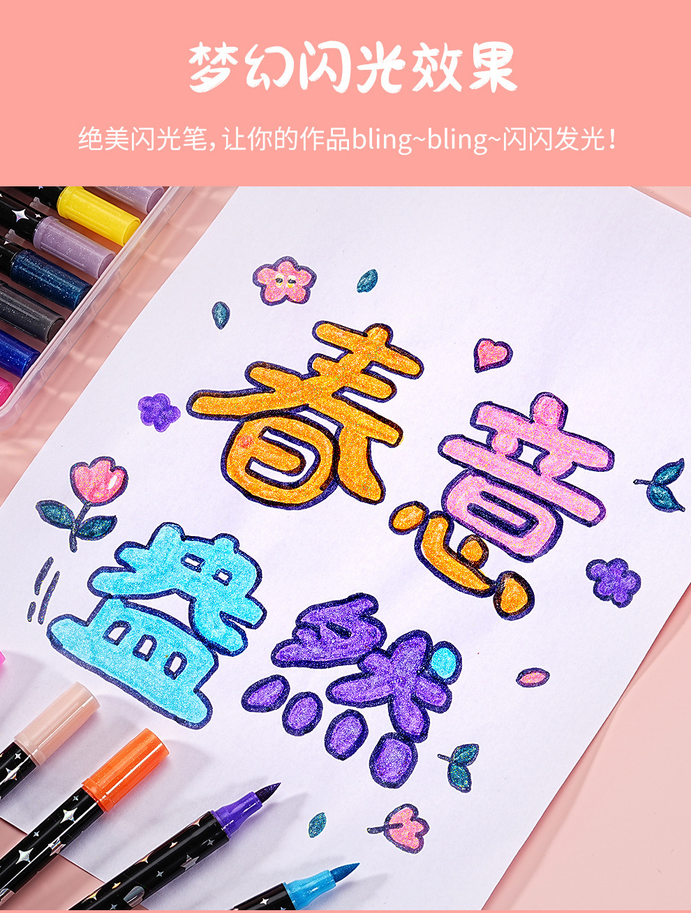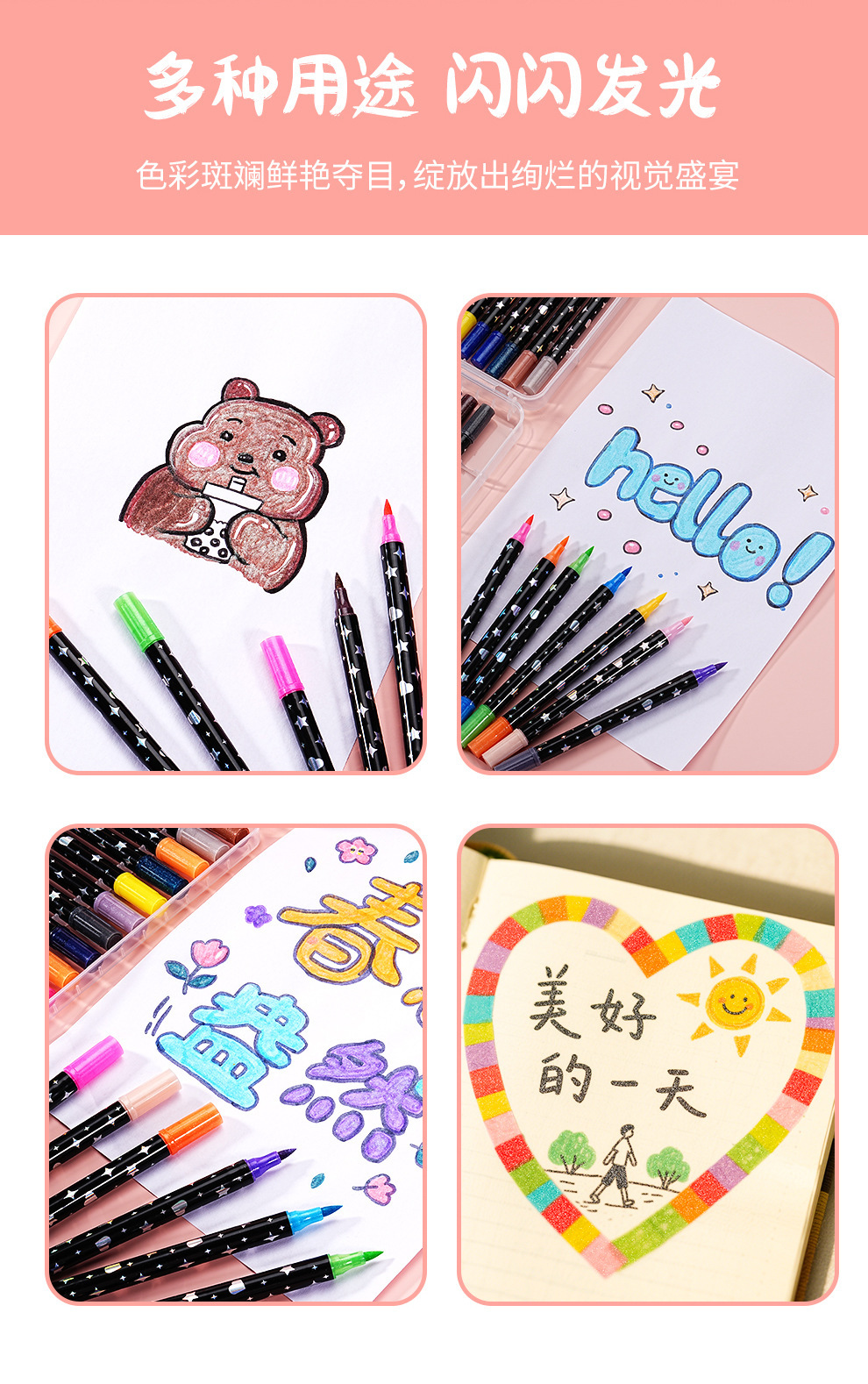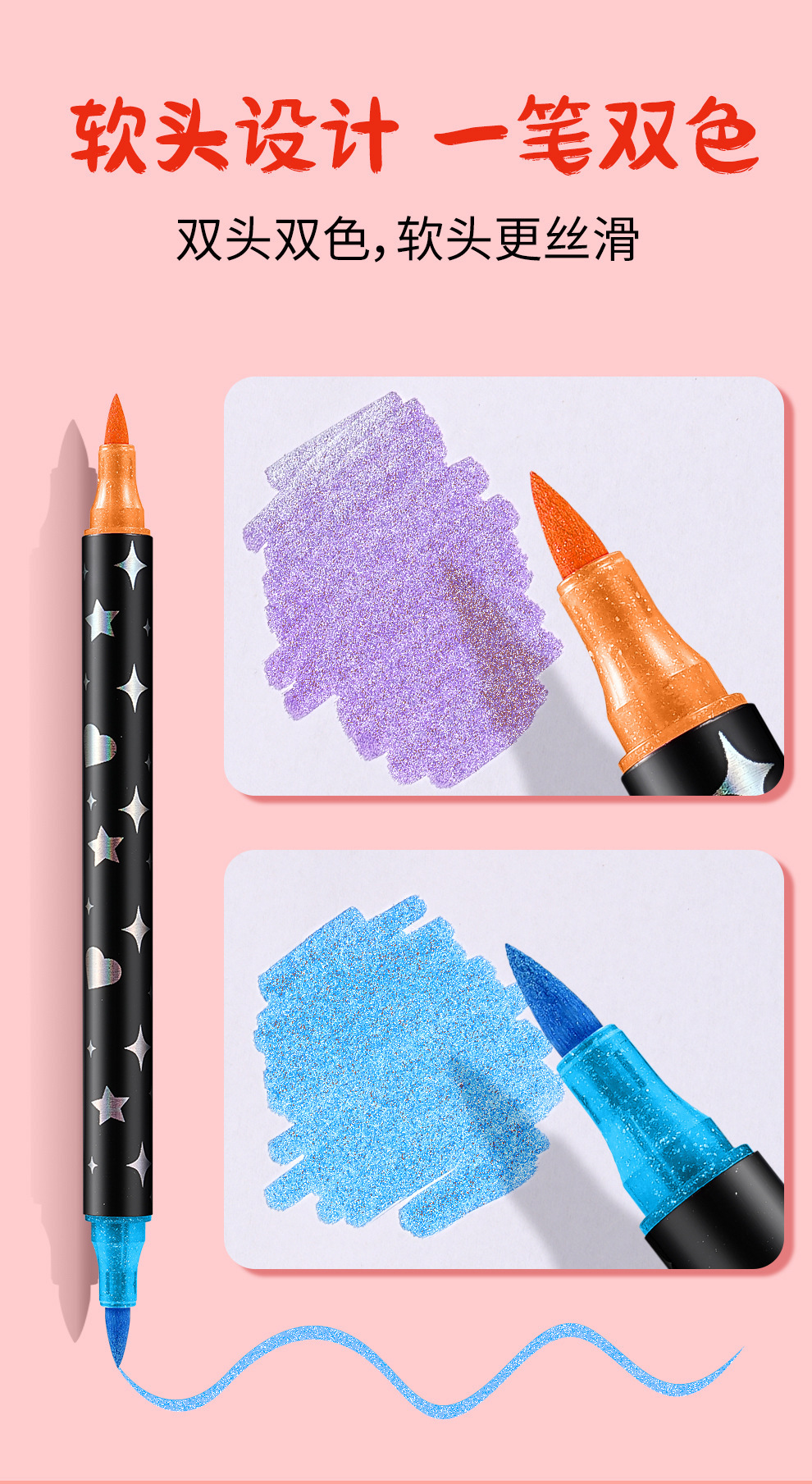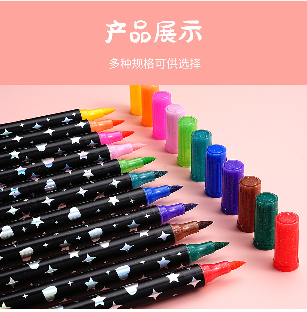 Marcador flash de dos colores de dos cabezas Pluma de curry de pintura Pluma de acuarela Traje de lápiz de brillo fluorescente Spot al por mayor