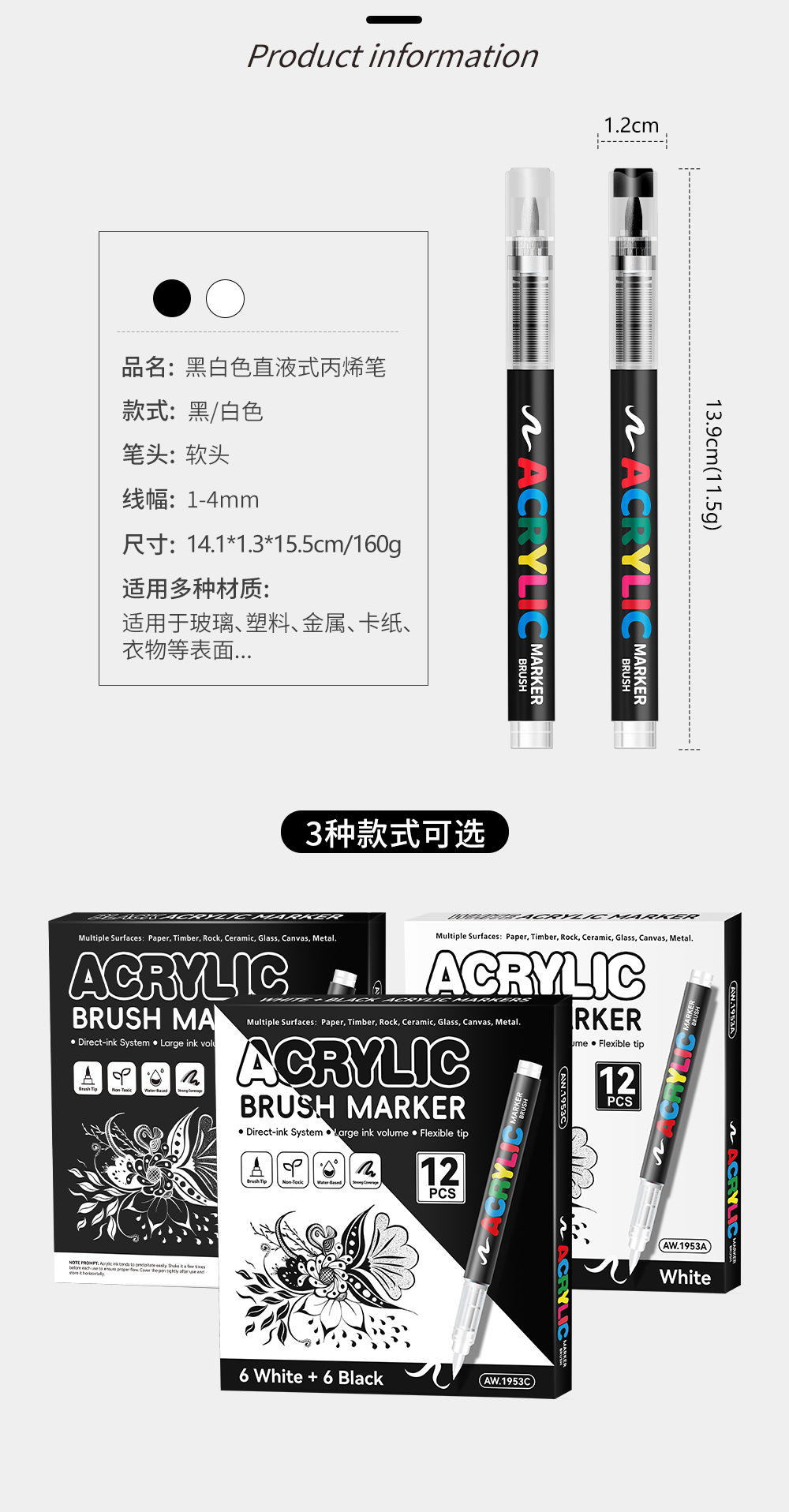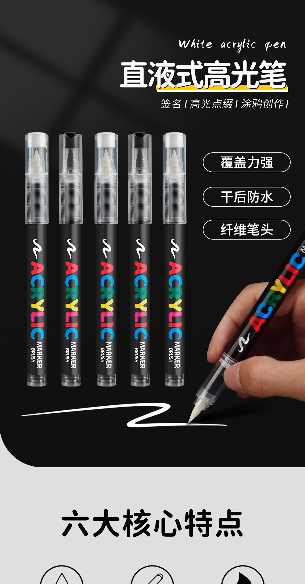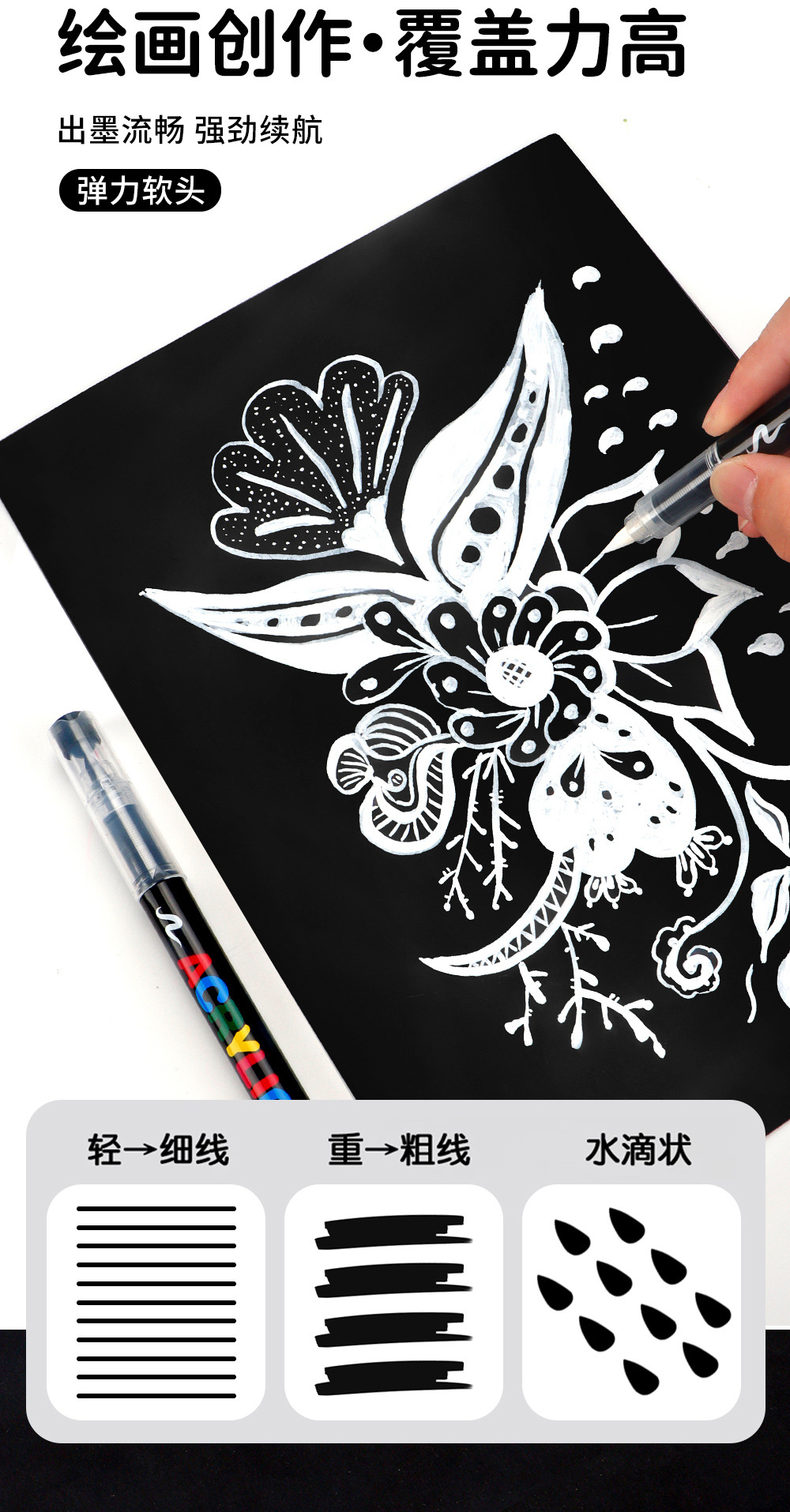 Líquido directo blando blanco y negro acrílico marcador de estudiantes de arte resaltado pinza de graffiti DIY pinza de dibujo a mano