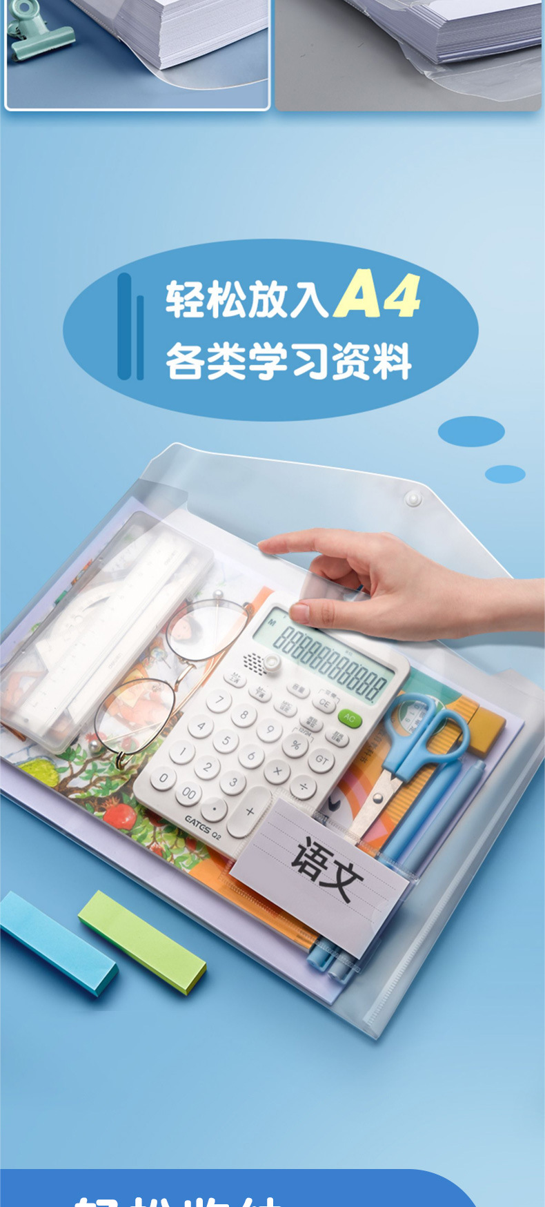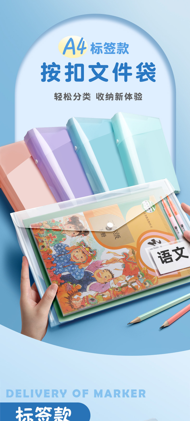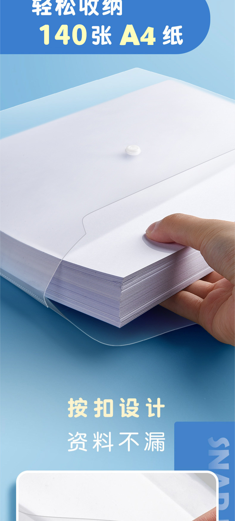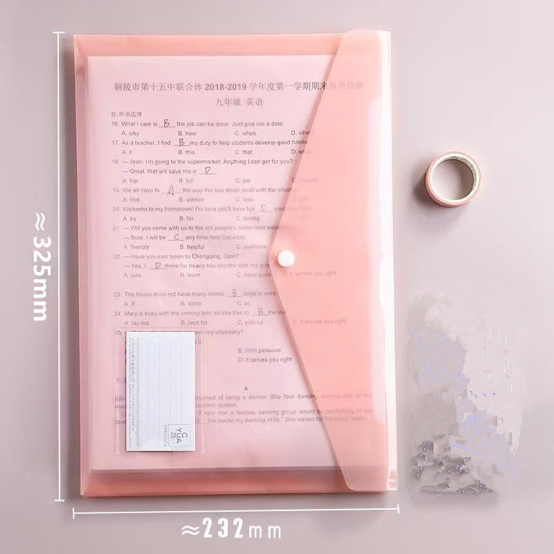 A4 bolsas de archivo de botones transparentes de color bolsas de botones bolsas de almacenamiento de plástico a prueba de agua bolsas de archivos carpetas al por mayor
