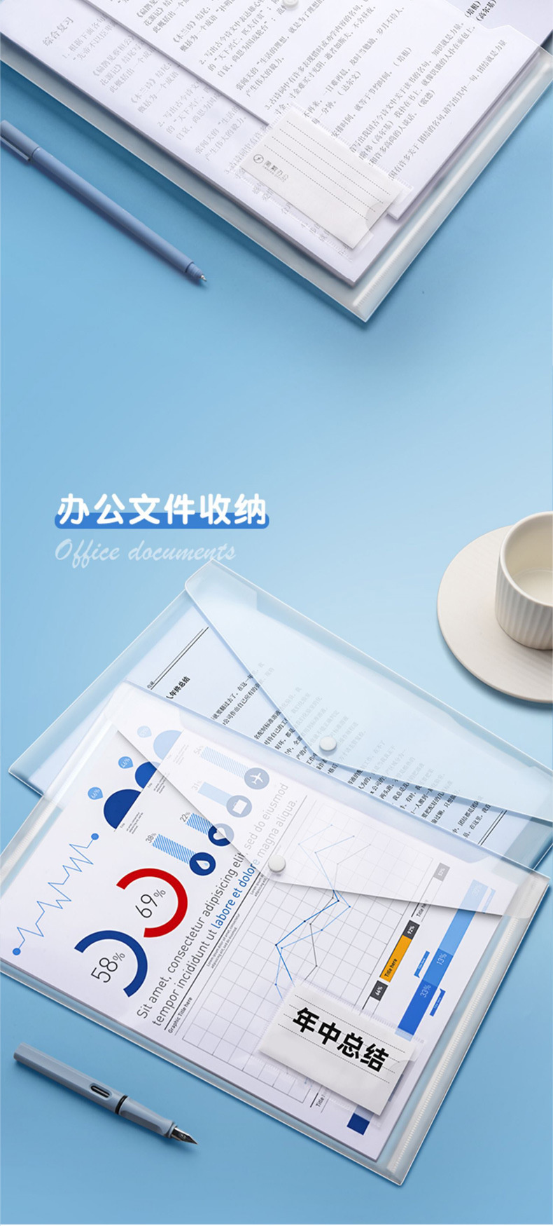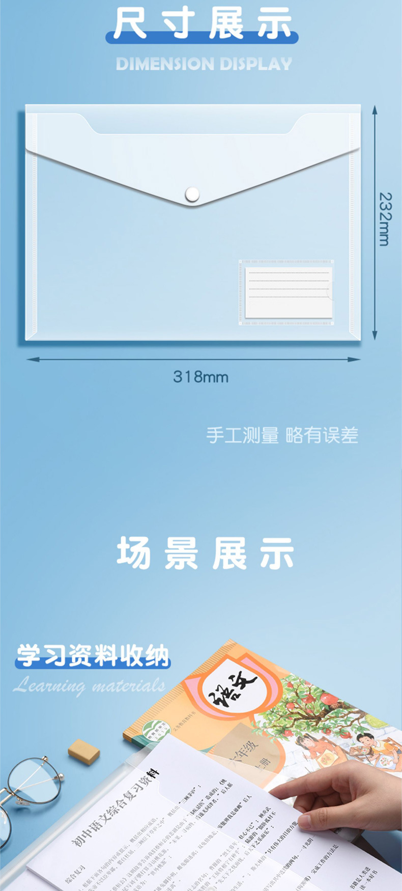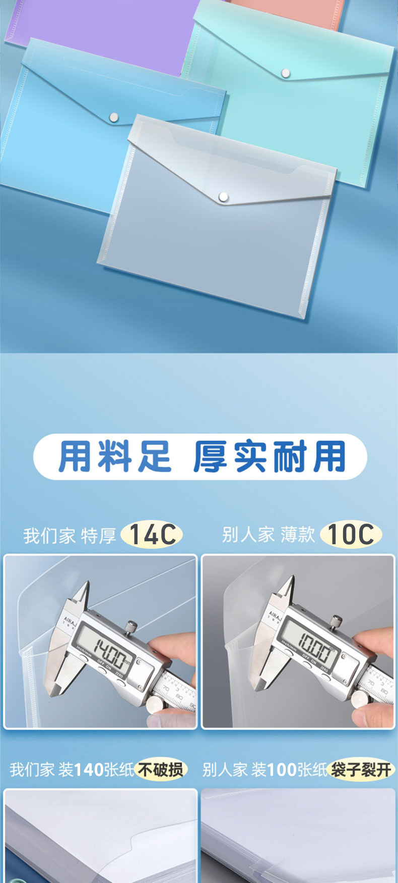 A4 bolsas de archivo de botones transparentes de color bolsas de botones bolsas de almacenamiento de plástico a prueba de agua bolsas de archivos carpetas al por mayor