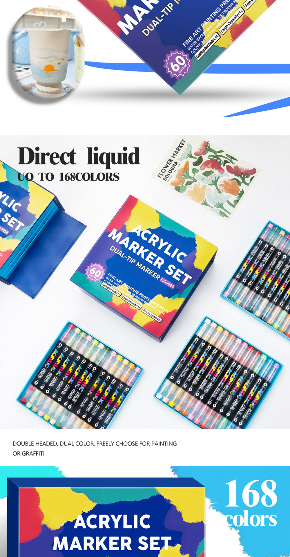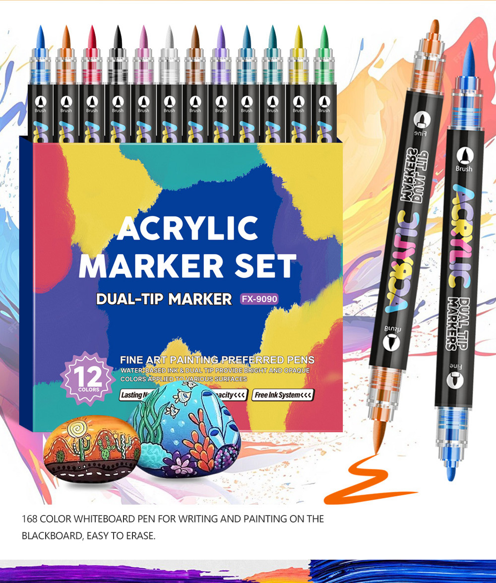 Doble cabeza líquida recta acrílico marcador conjunto de cabeza dura suave 168 color pintura impermeable DIY pincel de estudiantes al por mayor