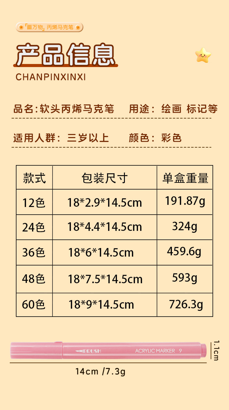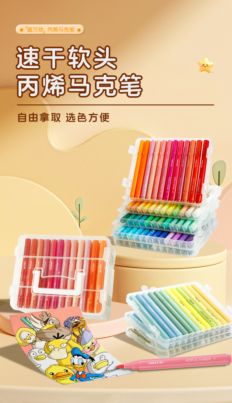 Caja plegable de cabeza blanda varilla de color acrílico marcador bolígrafo de acuarela plegable para estudiantes caja plegable pincel opaco para niños