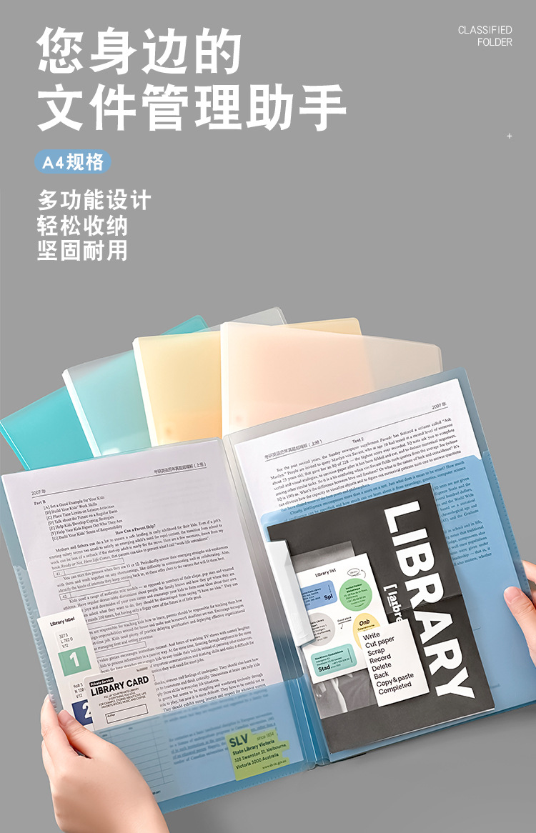 Carpeta A4 multifuncional Carpeta de almacenamiento de color gradiente Carpeta de clasificación de documentos Carpeta de informe de libros