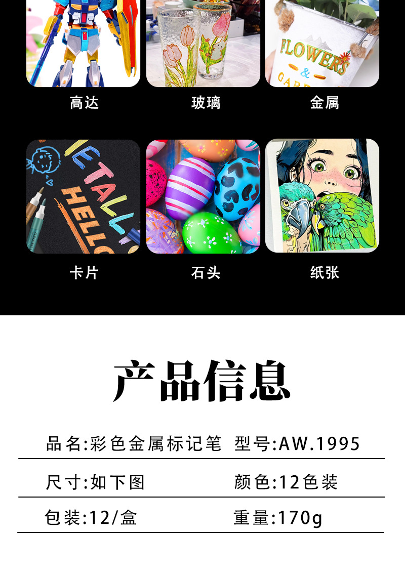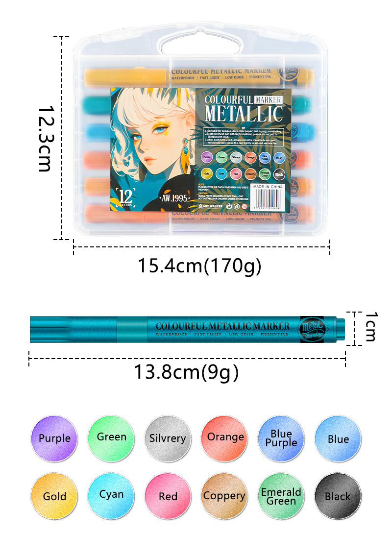 | Especificaciones | Set de 12 colores (caja transparente), set de 12 colores (caja blanca), set de 12 colores (caja de cartón), set de 18 colores (caja de cartón) |