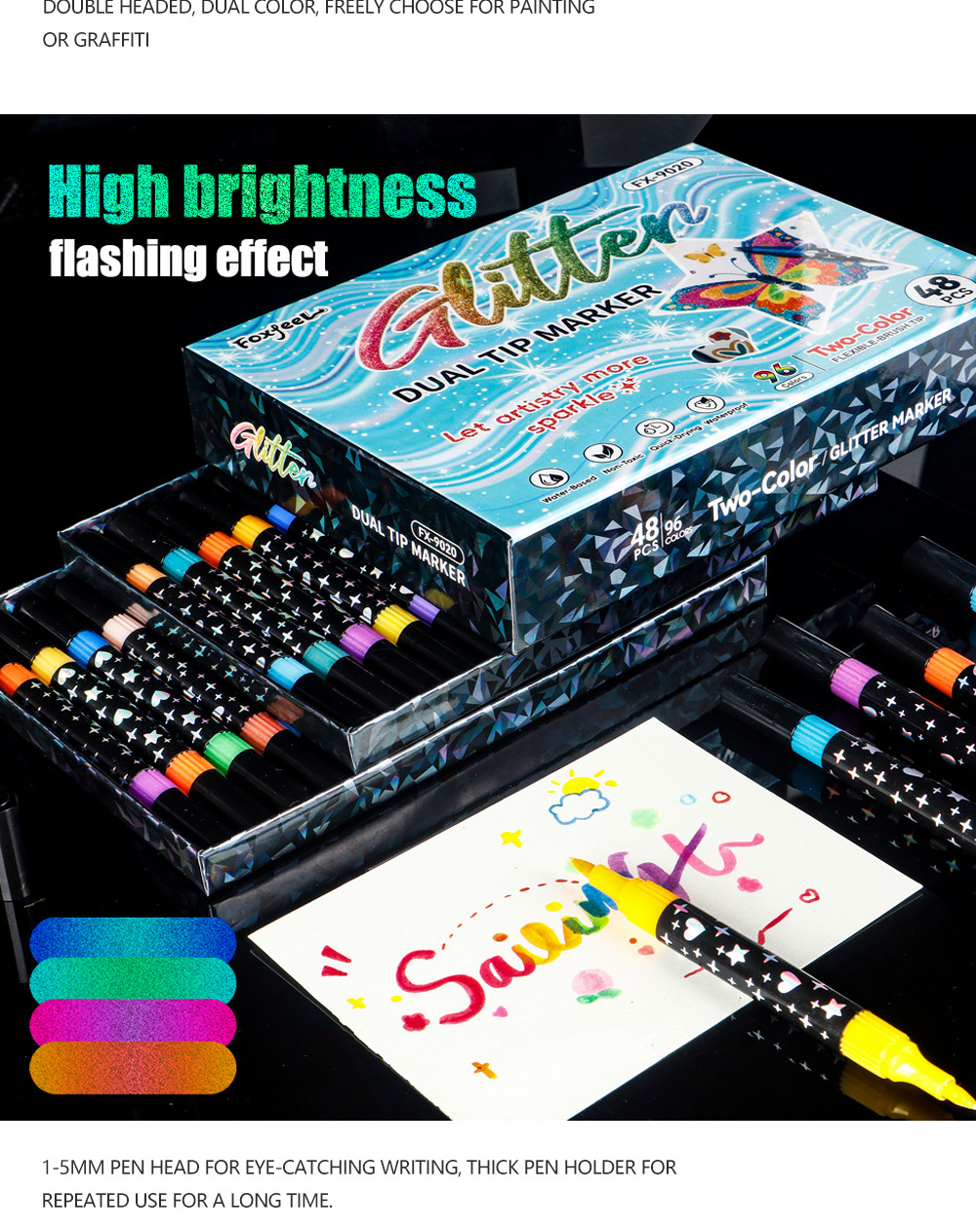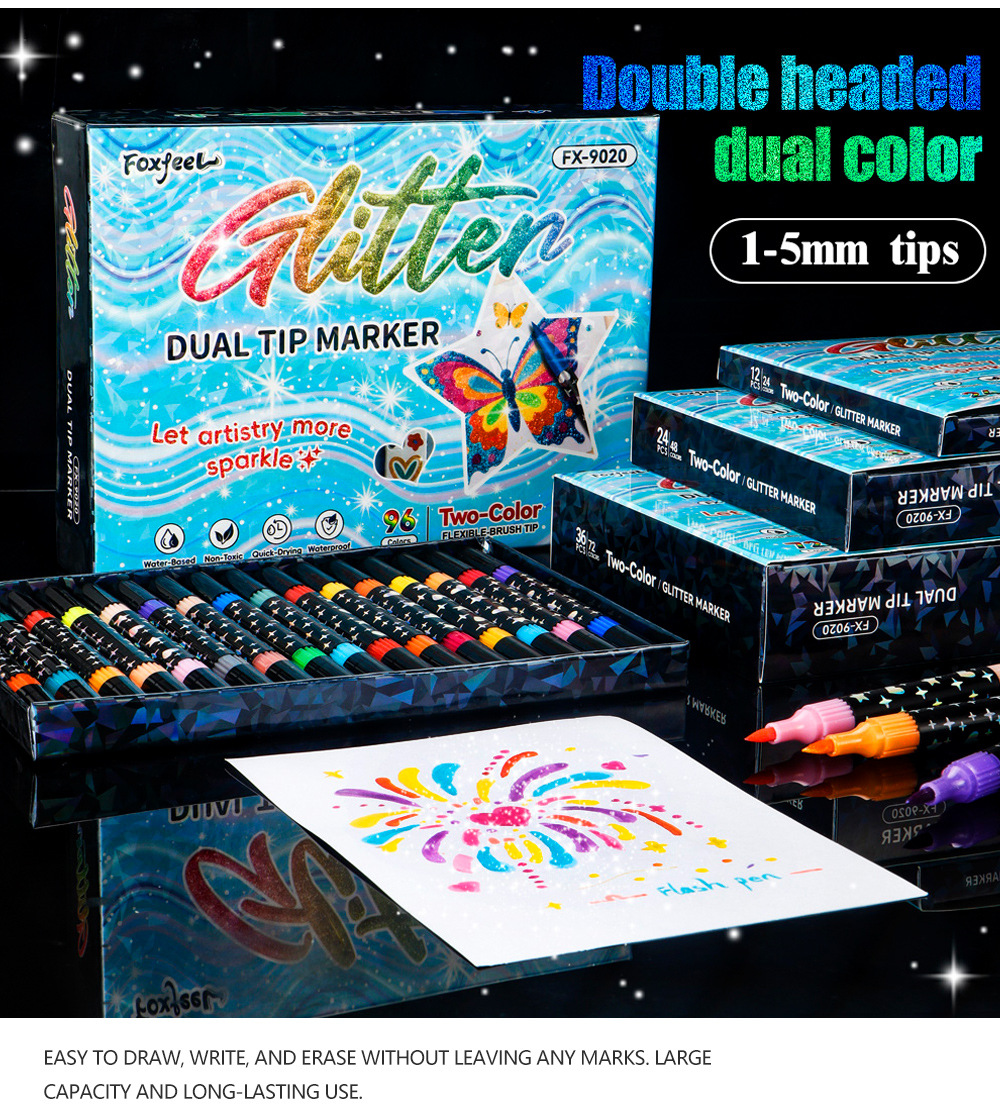 Doble cabeza de dos colores marcador de flash polvo marcador DIY pintado graffiti creativo marcador tiza perlada