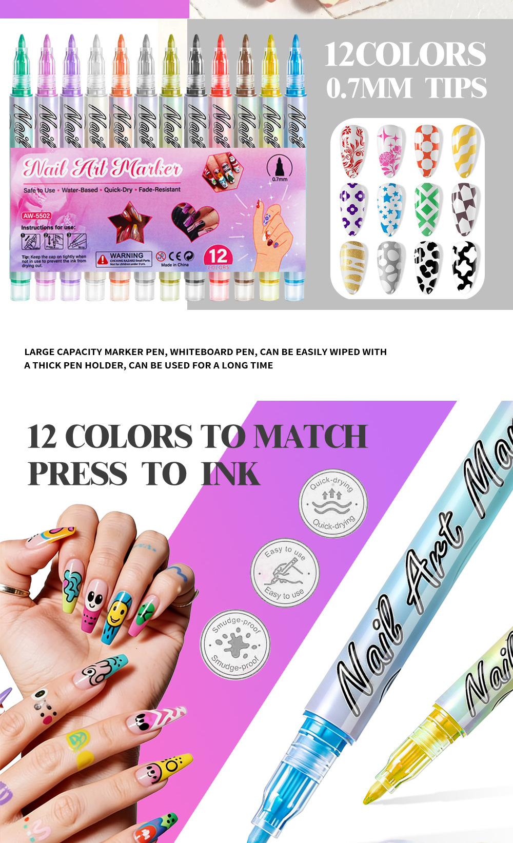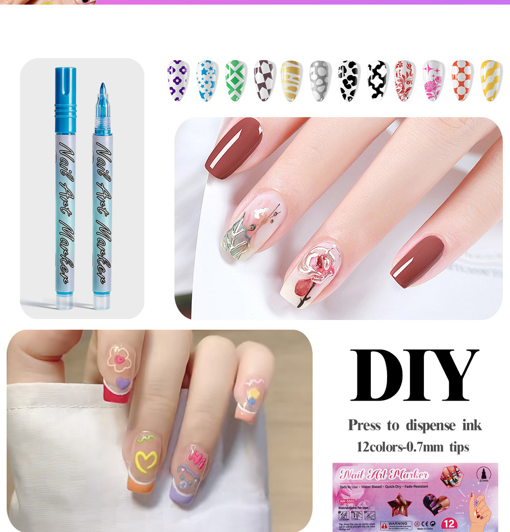 Transfronterizos para uñas graffiti pluma de pintura de uñas DIY marca de secado rápido pluma de dibujo de gancho de color pluma de uñas