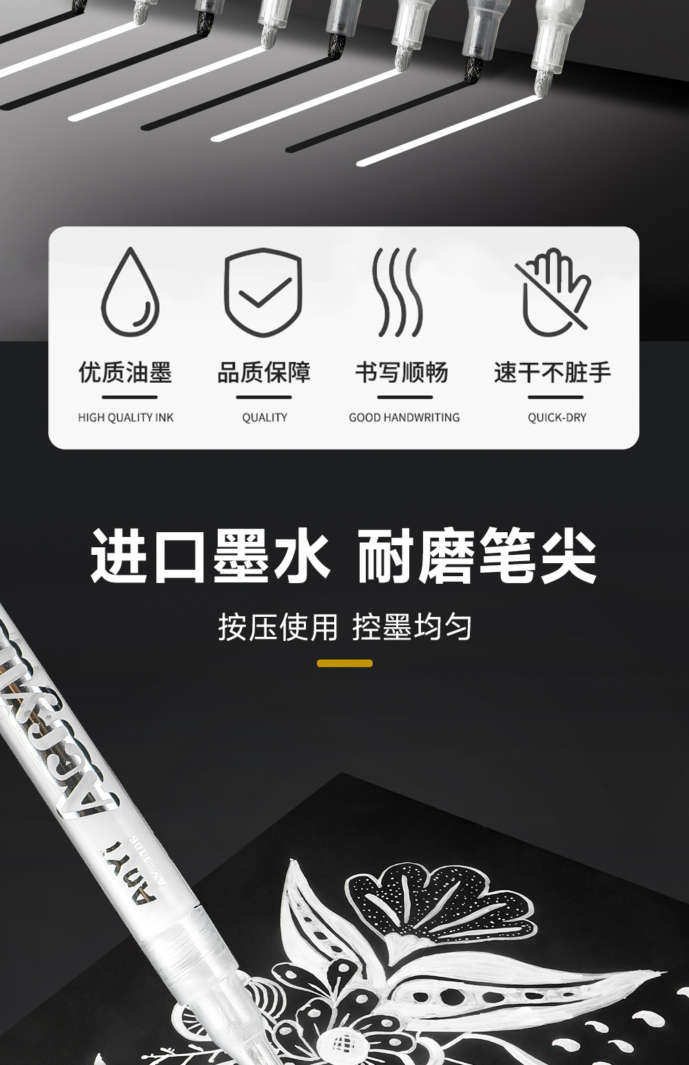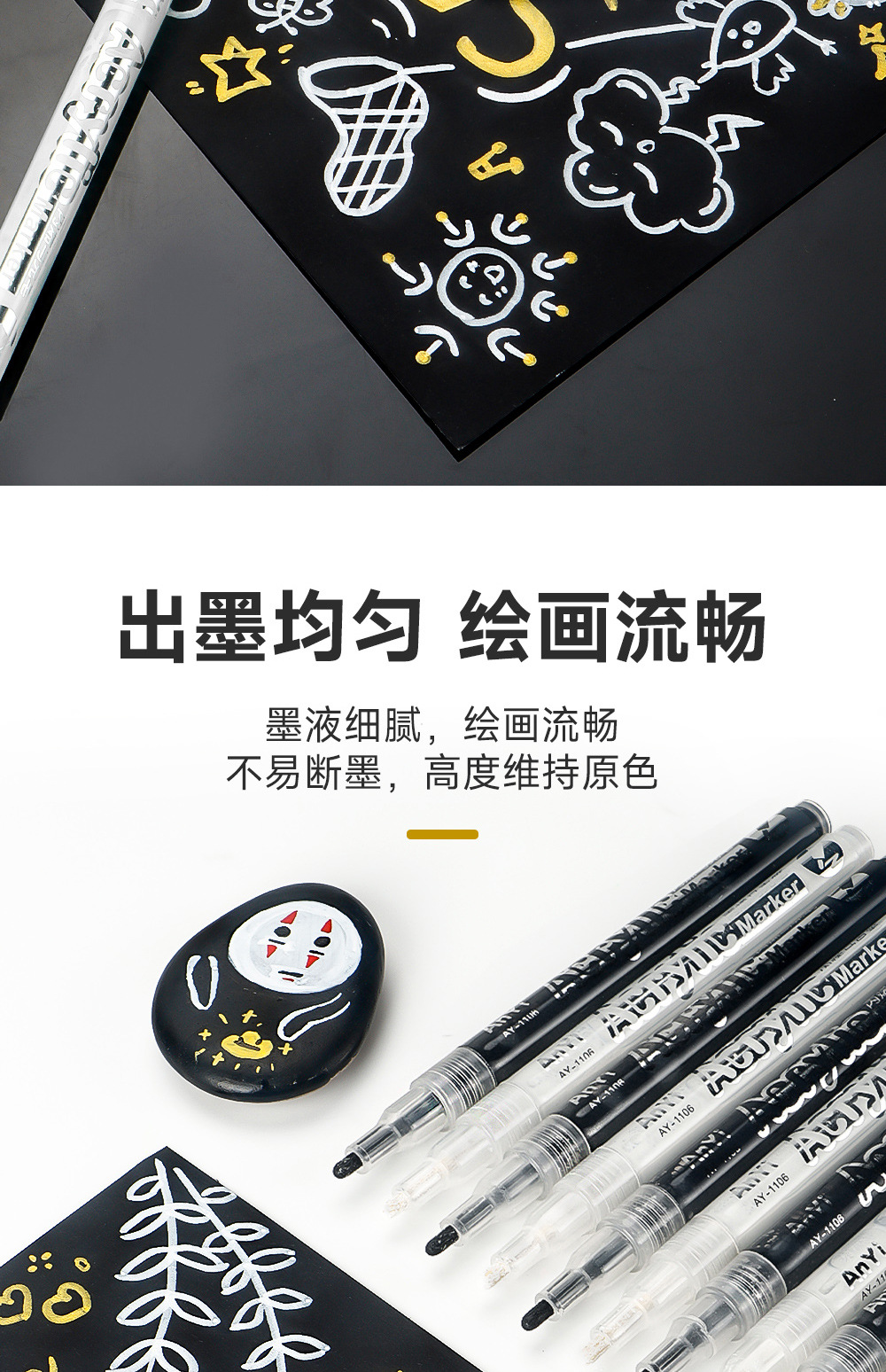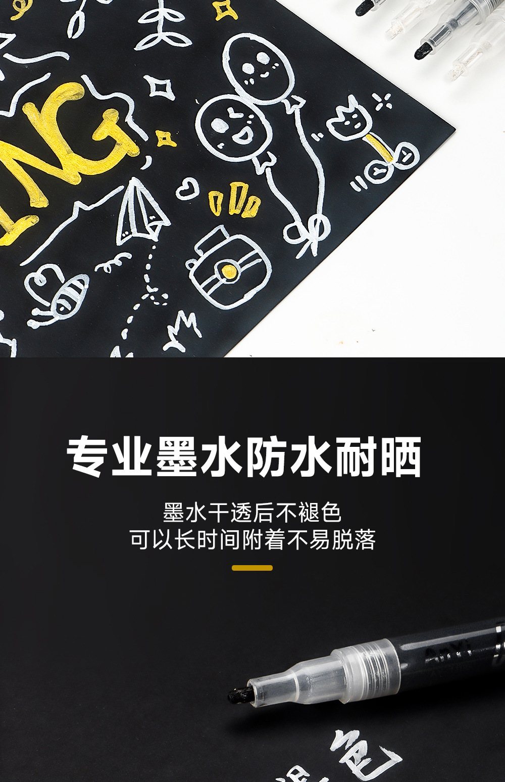 Transfronterizo blanco y negro resaltado lápiz de vidrio cerámico diy velocidad seco acrílico lápiz de marca de pintura de arte graffiti lápiz de marca