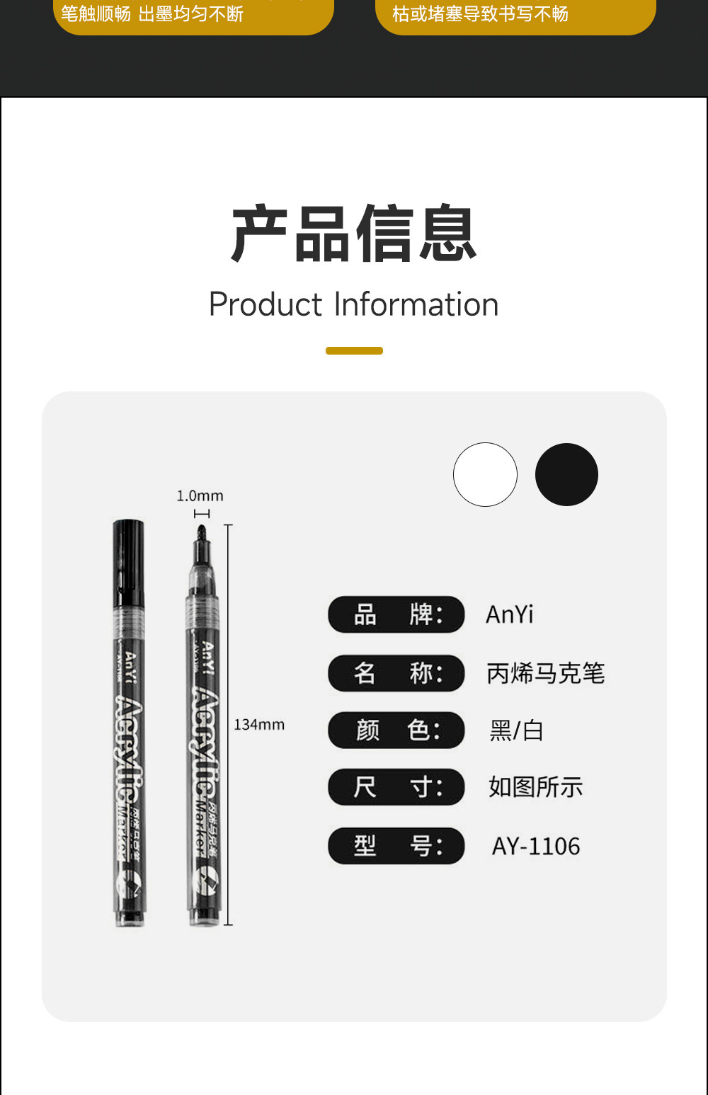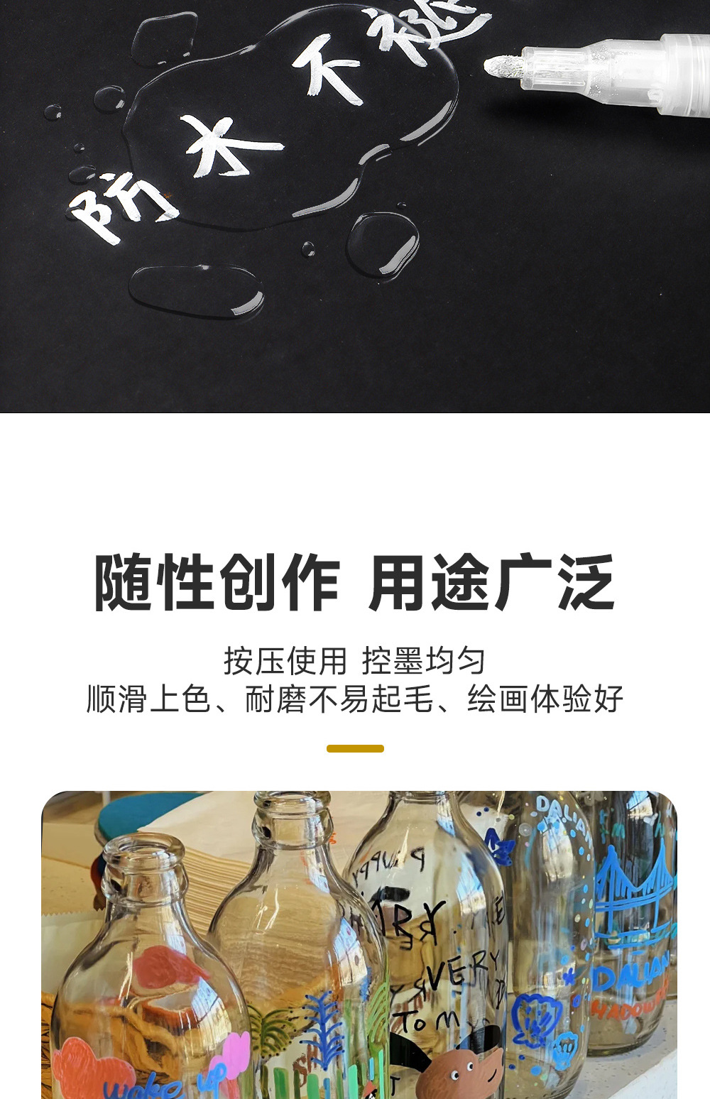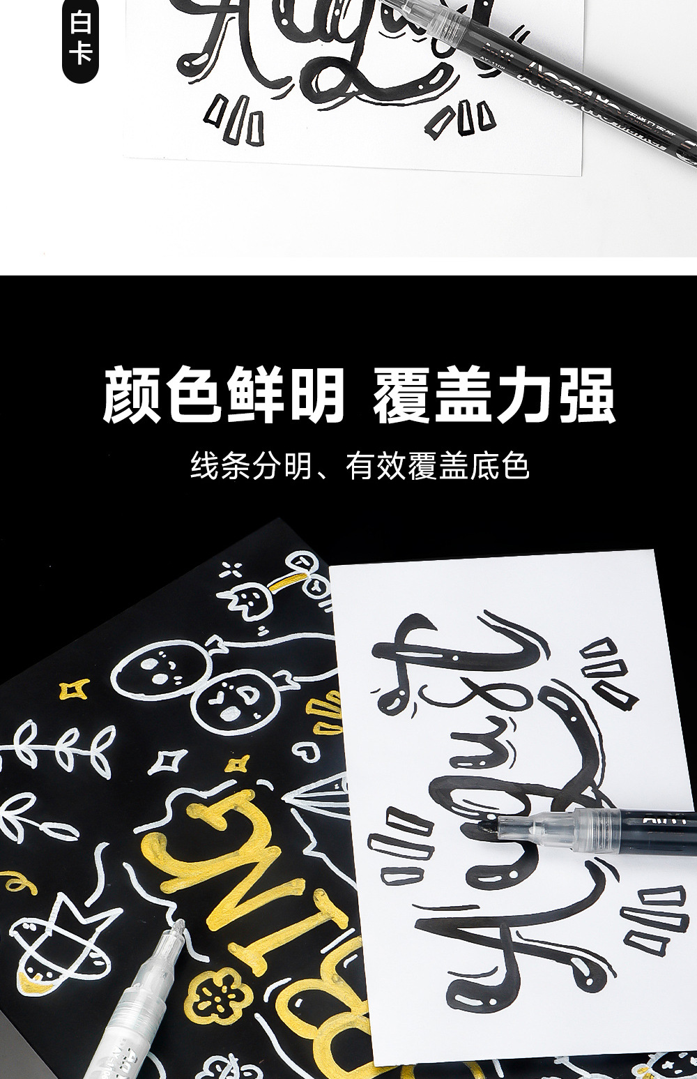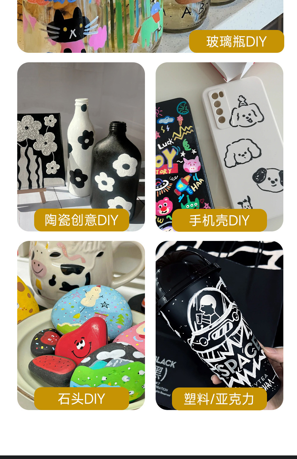 Transfronterizo blanco y negro resaltado lápiz de vidrio cerámico diy velocidad seco acrílico lápiz de marca de pintura de arte graffiti lápiz de marca