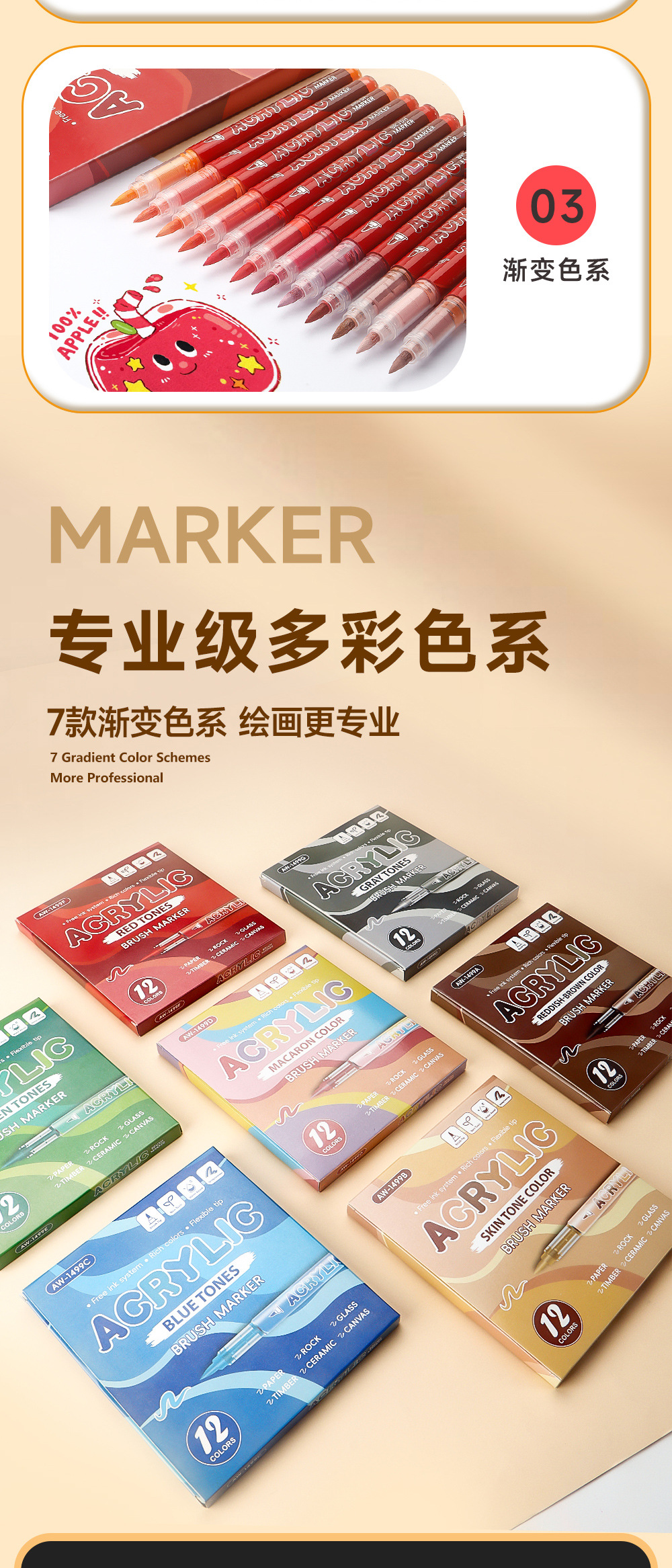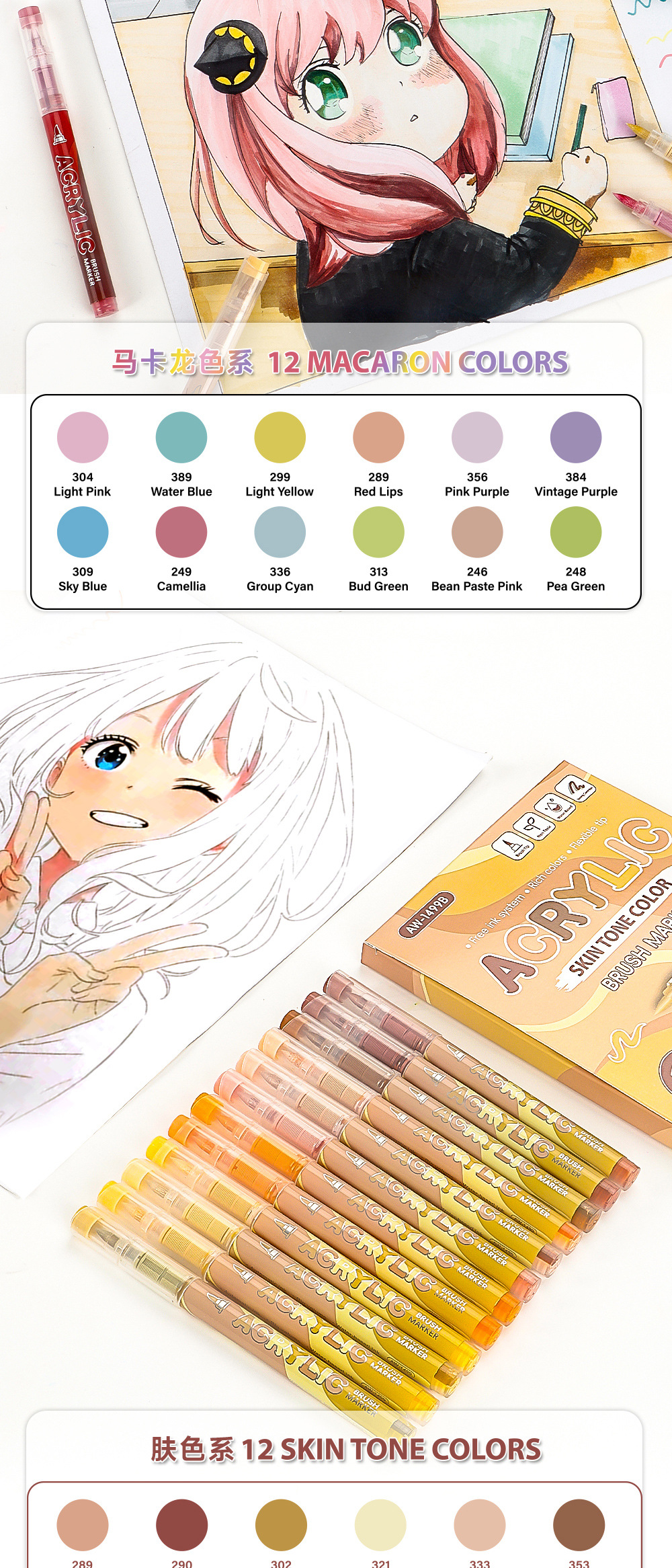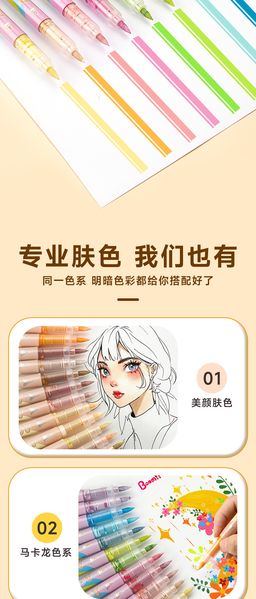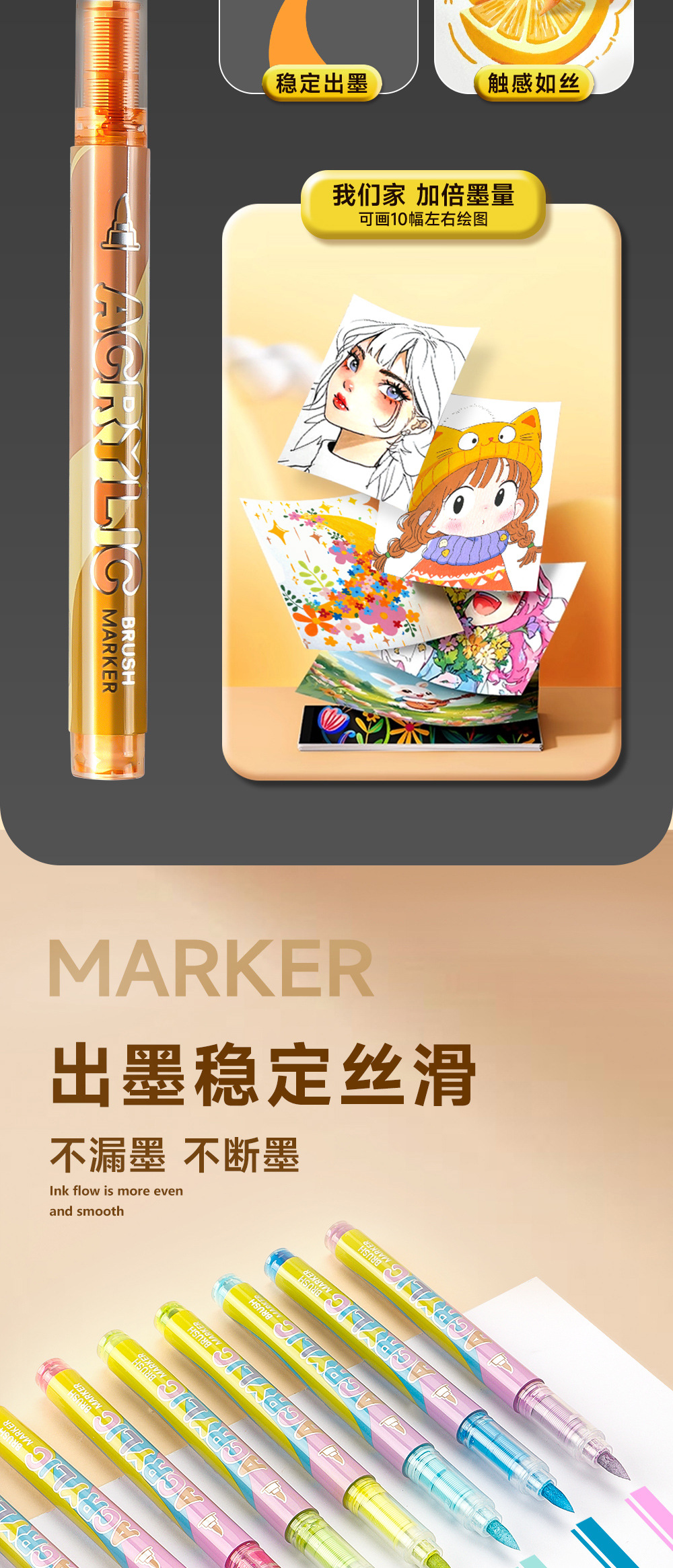 Gradiente de color líquido directo acrílico marcador pluma conjunto de dibujo de piel de animación pluma plegable papel opaco al por mayor