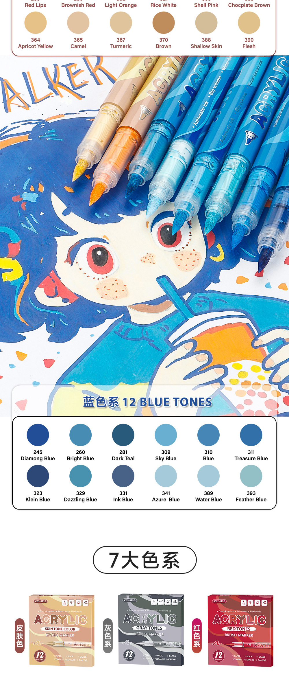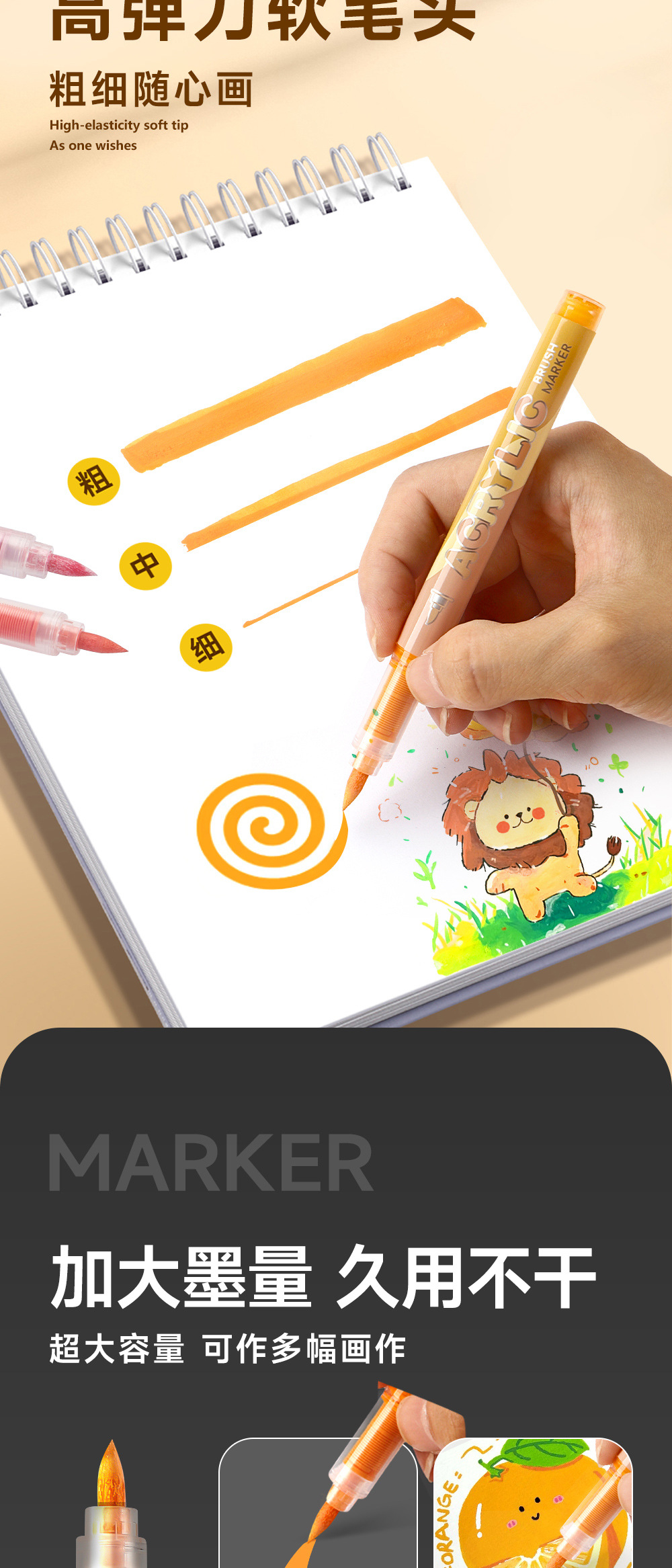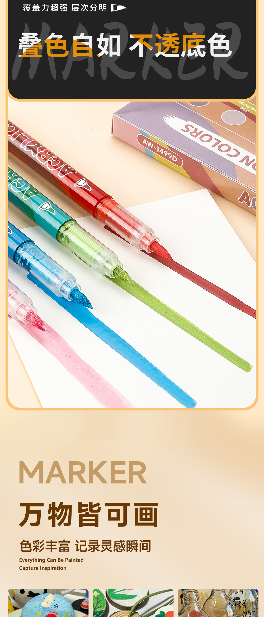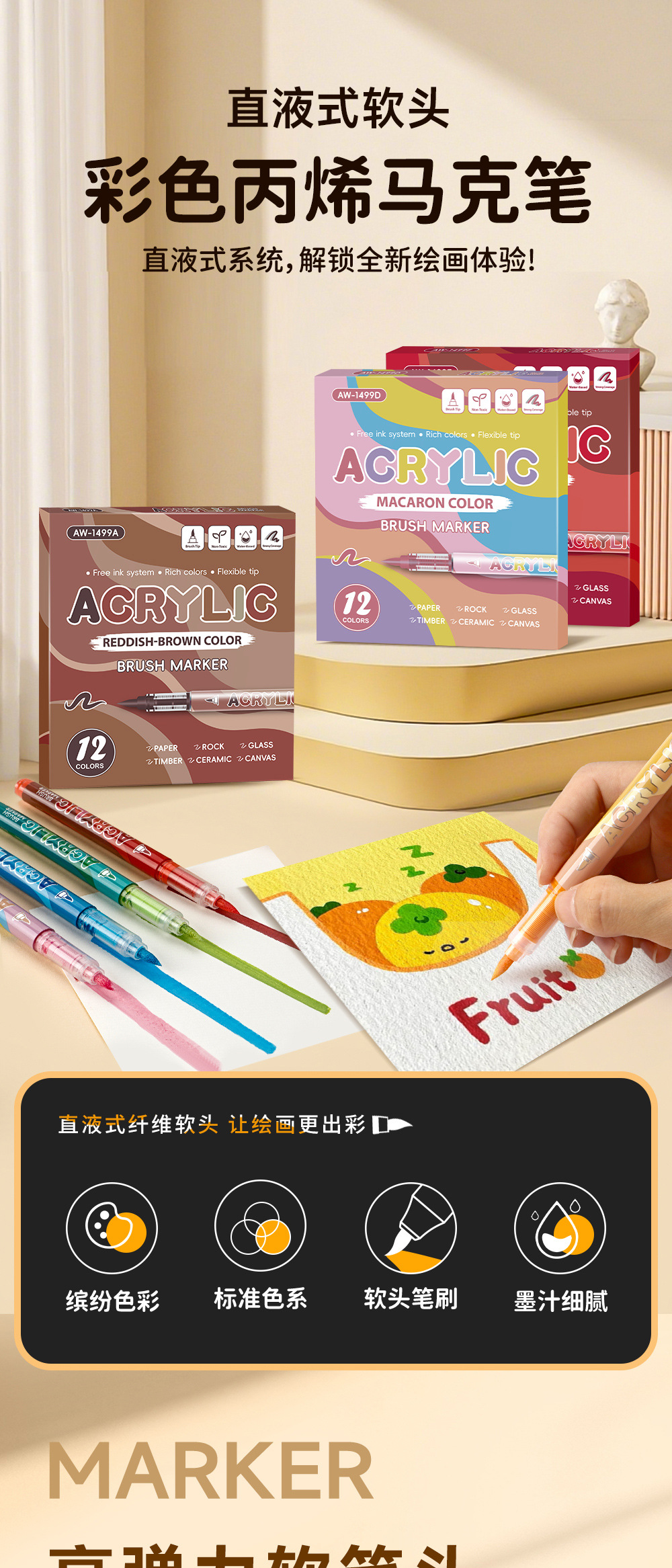 Gradiente de color líquido directo acrílico marcador pluma conjunto de dibujo de piel de animación pluma plegable papel opaco al por mayor