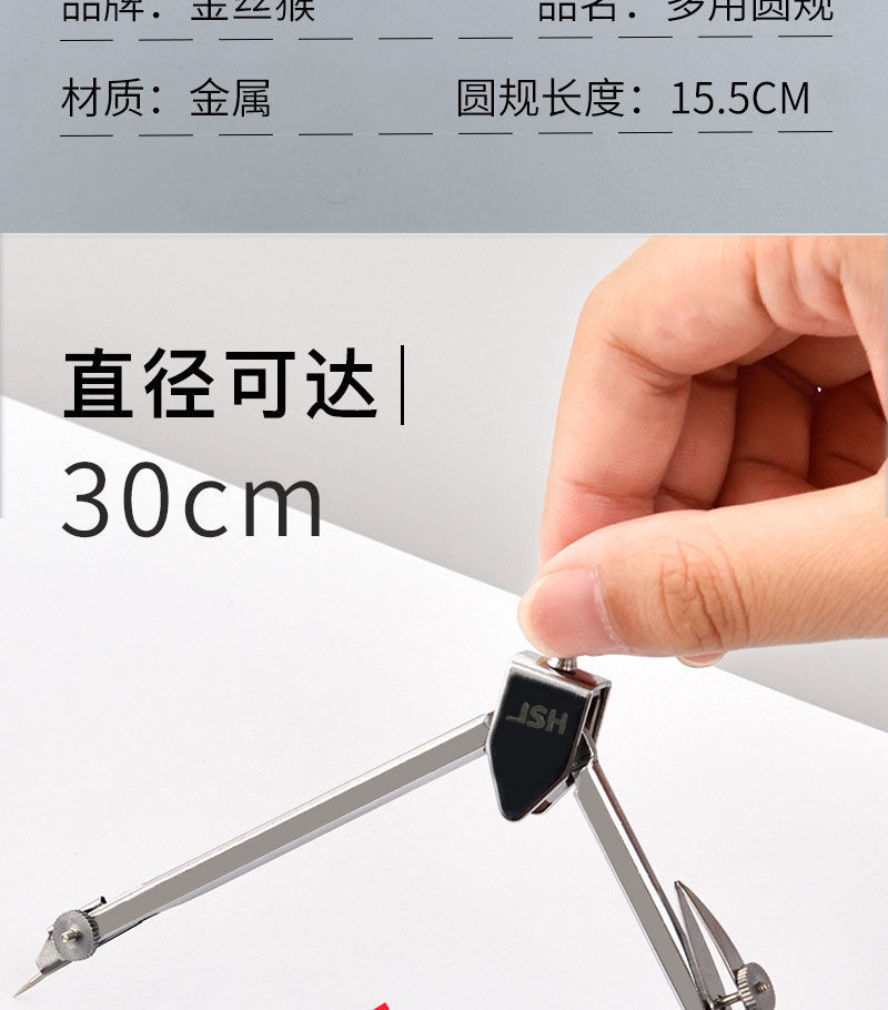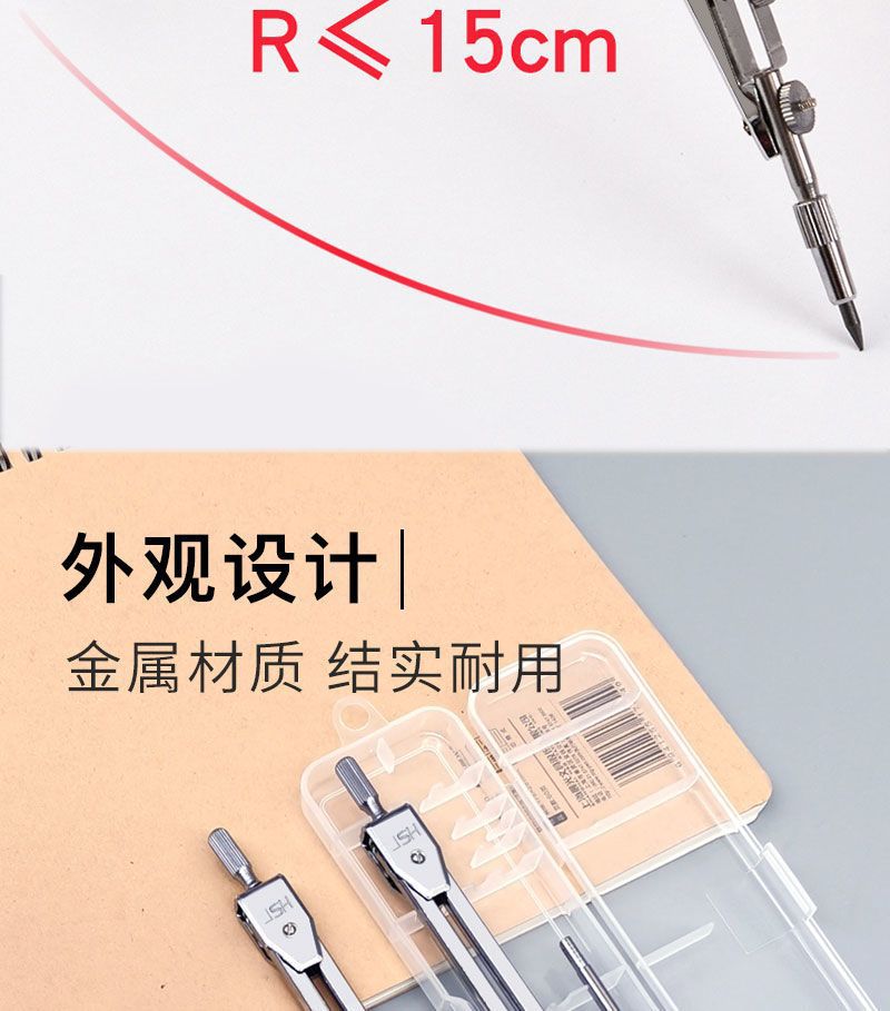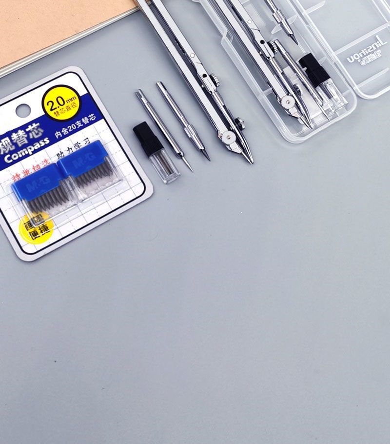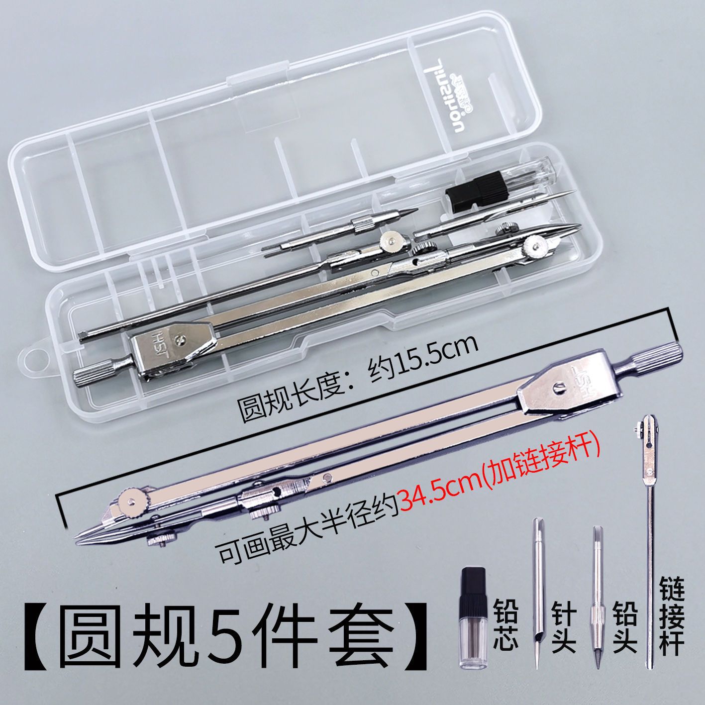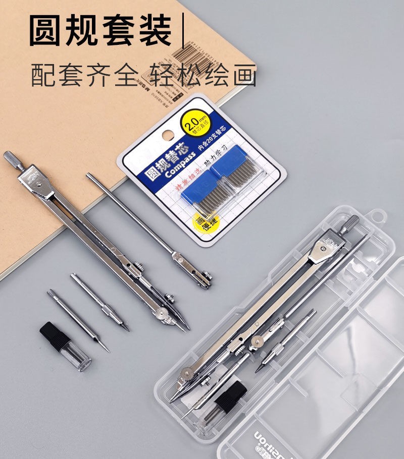 Instrumento de dibujo de brújula, conjunto de brújula metálica grande, máquina de dibujo para estudiantes, regla y regla