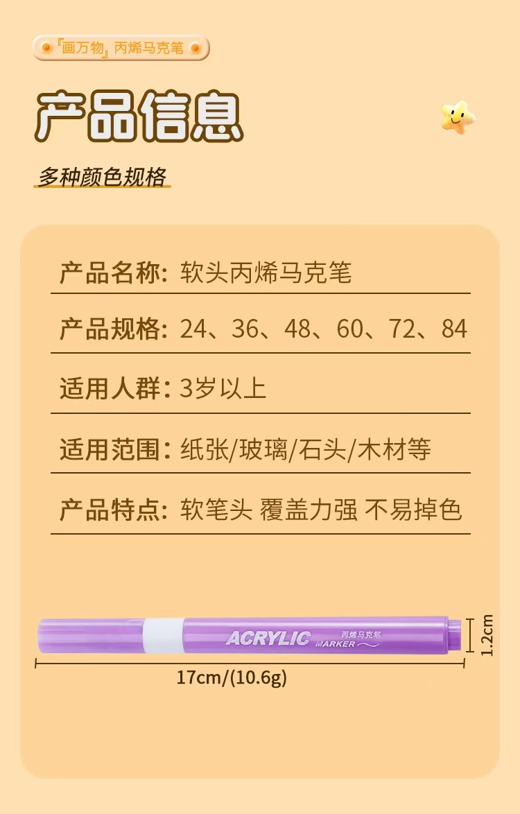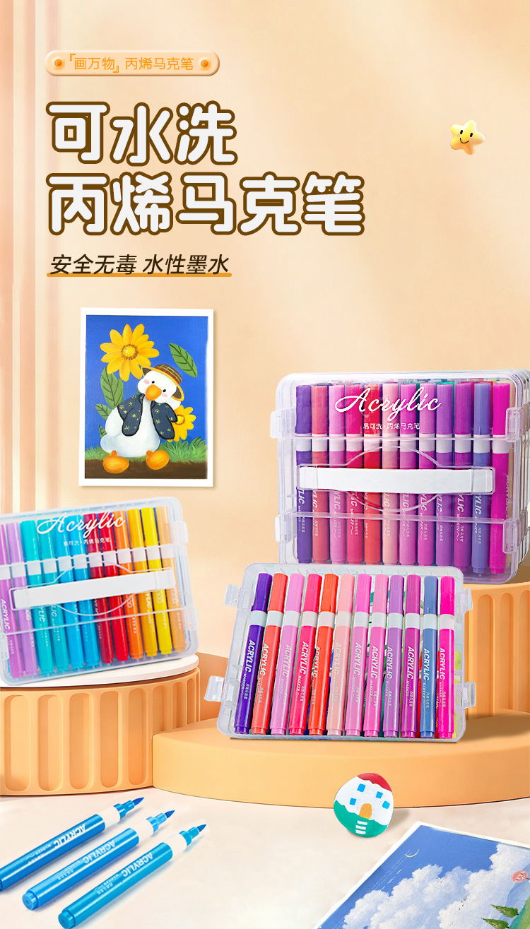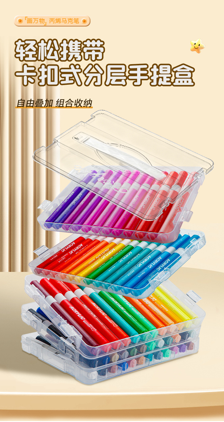 Caja de bolígrafo de acrílico marcador de color blando para estudiantes y niños con bolígrafo de acuarela plegable opaco pincel lavable con agua