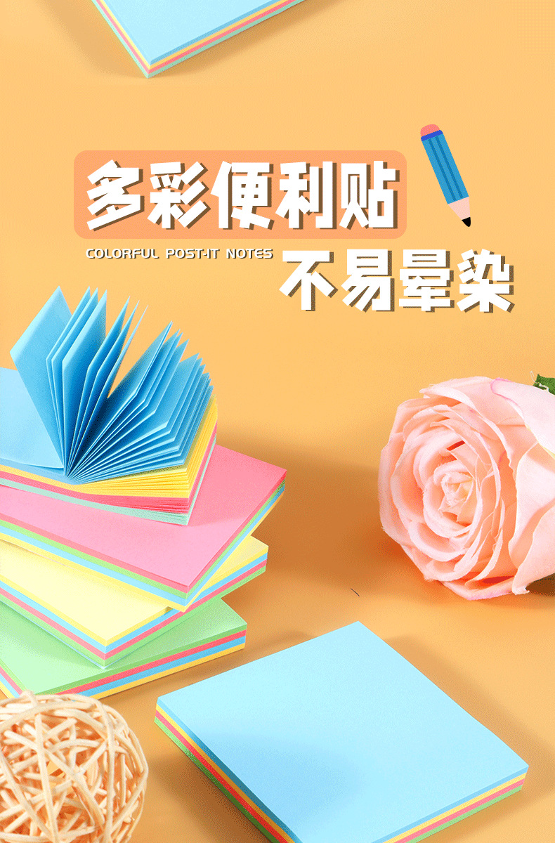Post-it - notes de color estudiantes creativos rasgar pegatinas de índice de papel de escritorio suministros de papelería simple notebook al por mayor
