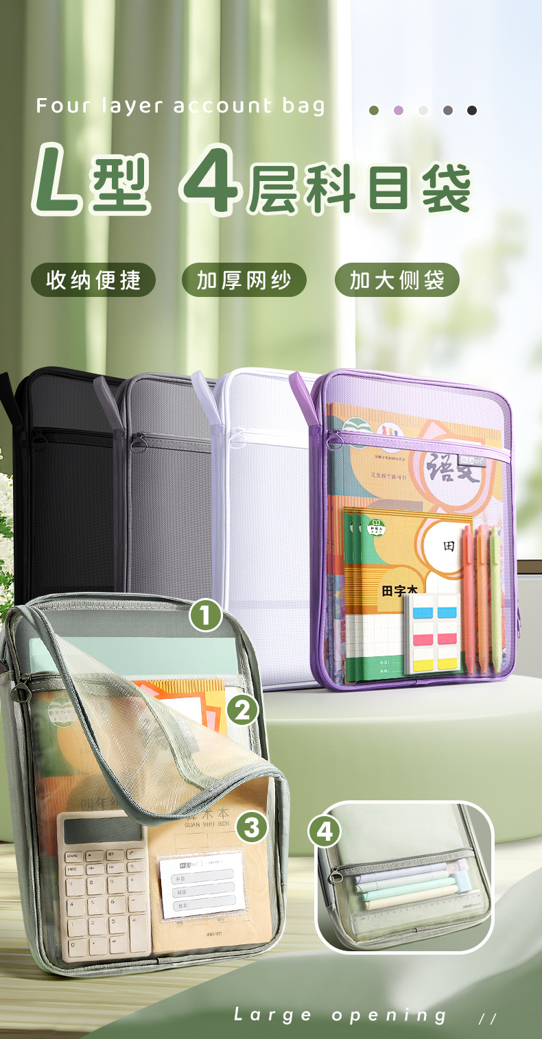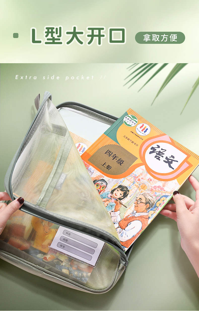 Bolsa de sujeción en forma de L bolsa de archivo transparente portátil gran abertura tipo cremallera bolsa de mano de estudiantes de primaria en stock