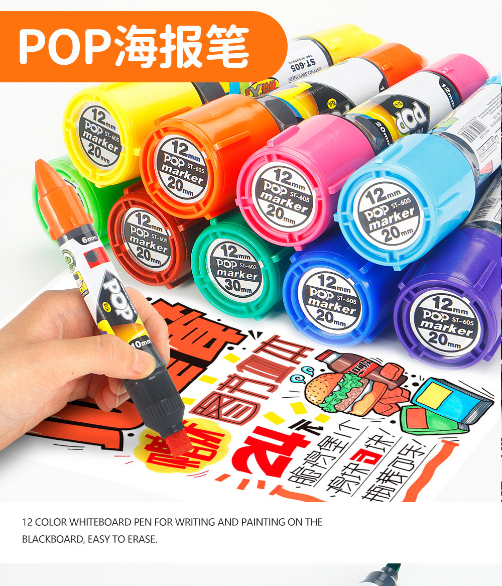 Póster POP de dos cabezas Mark Mark Pen de gran capacidad de cabeza gruesa Supermercado farmacia Mark rotulador publicitario de cabeza grande rotulador de color