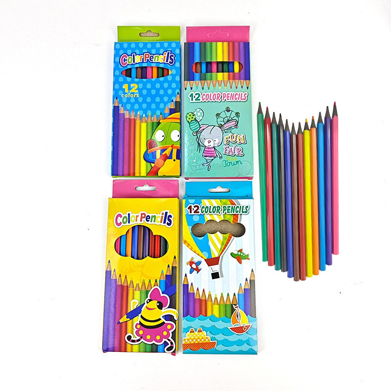 Conjunto de lápiz de pintura en color transfronterizo para estudiantes dibujos animados encantadores frescos papelería lápiz de color 12 colores al por mayor