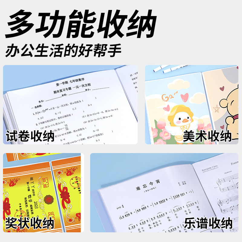A4 Folleto de información Paquete de archivo de inserción transparente Carpeta de archivo de clasificación Papel de prueba de estudiante Bolsa de almacenamiento Carpeta de suministros de oficina