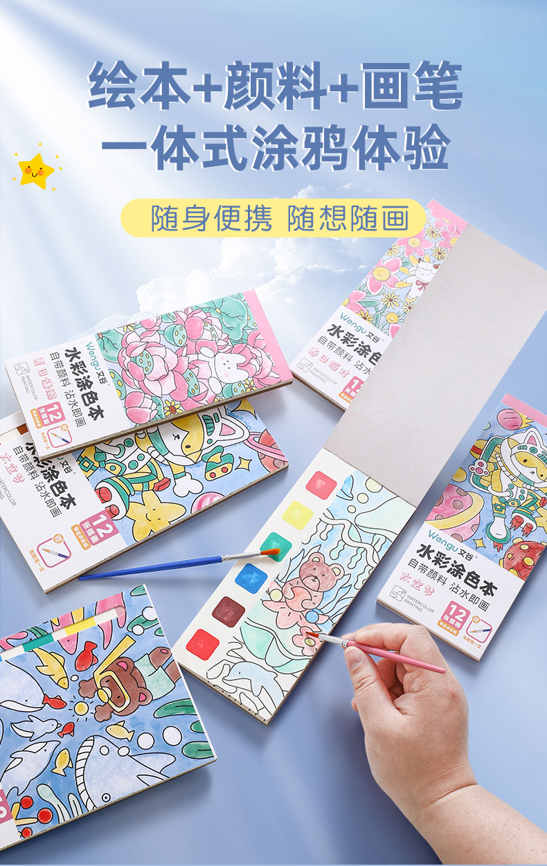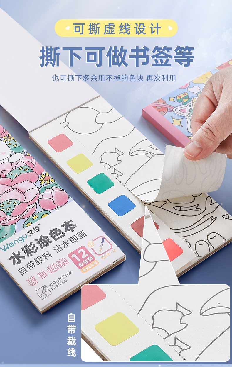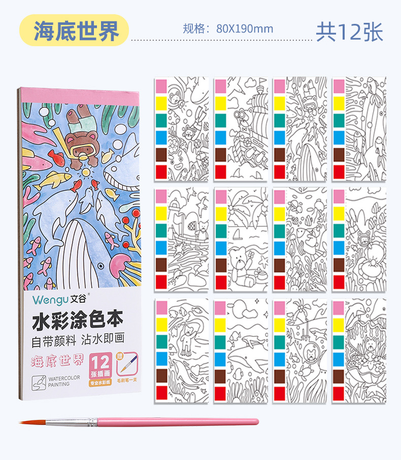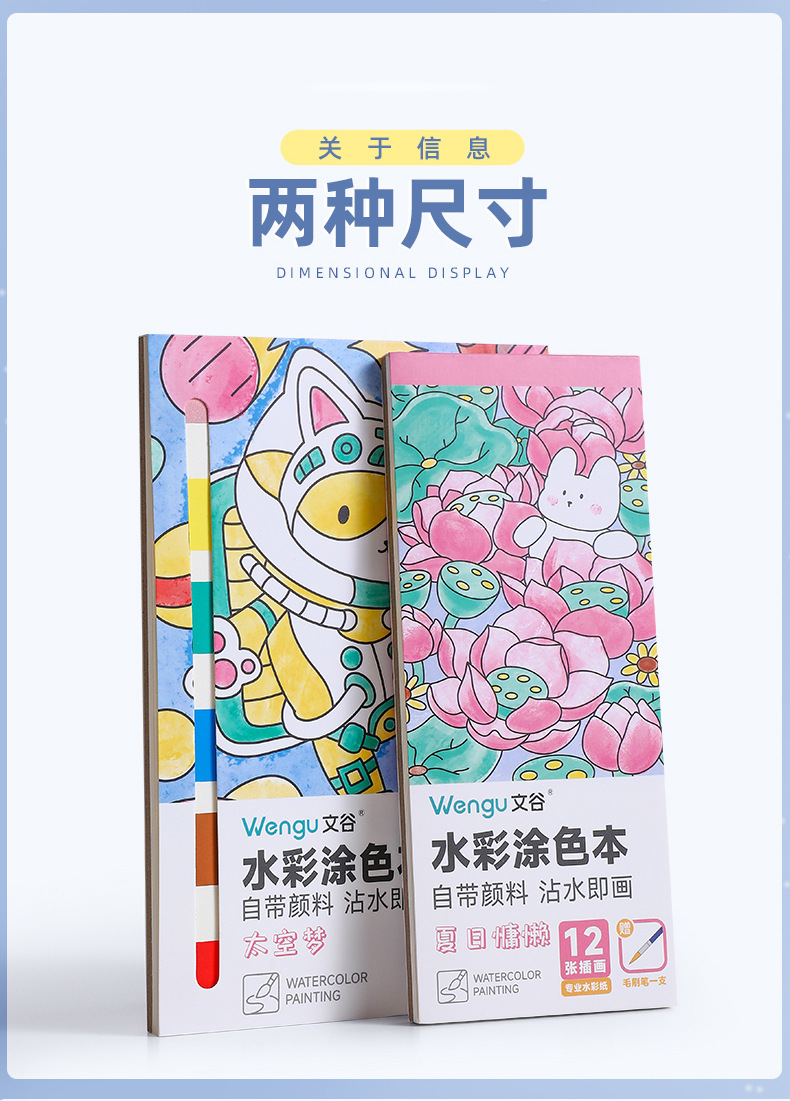 Cuaderno de pintura de acuarela para niños pintado en polvo de agua pintado graffiti pintado en el agua es el libro de pintura de color lleno de pintura con notas de pintura propia