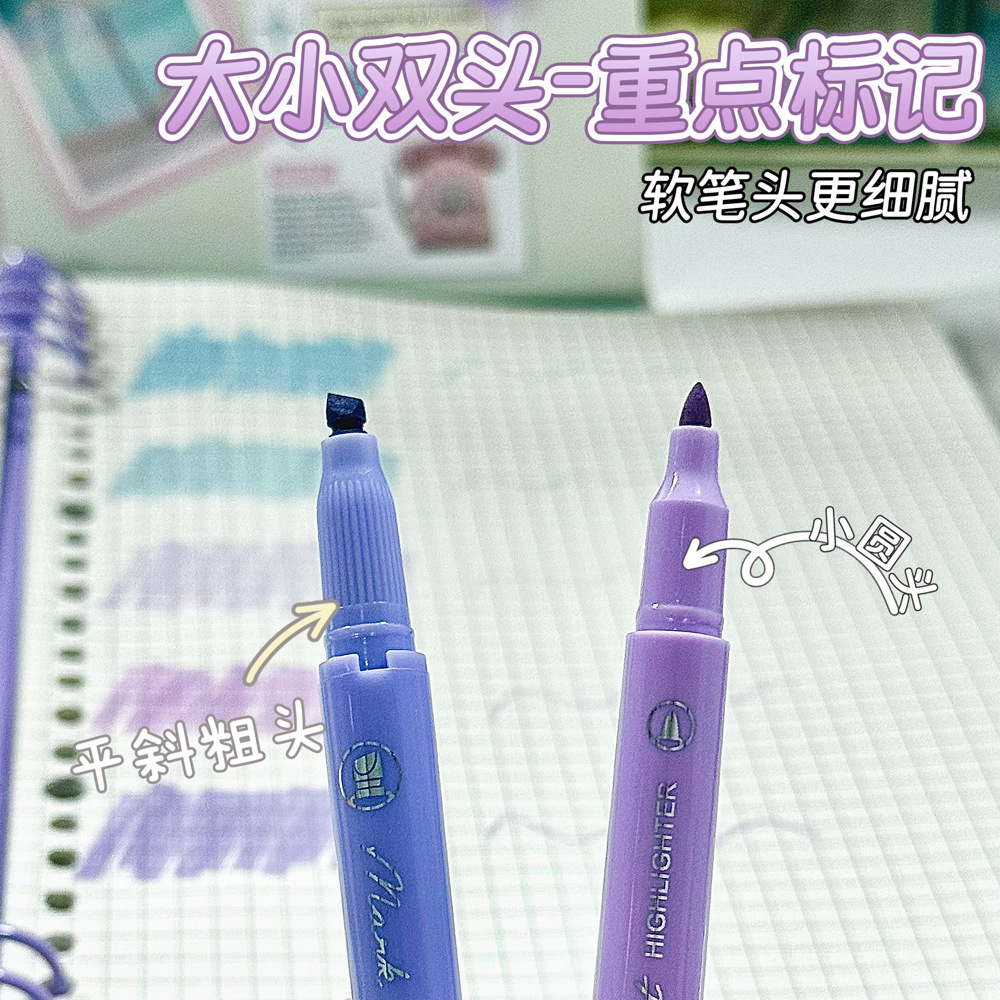 Dos cabezas de protección de ojos de color de resaltador conjunto de estudiantes de alto valor visual de doble cabeza marcador de cabeza suave bolígrafo de mano al por mayor