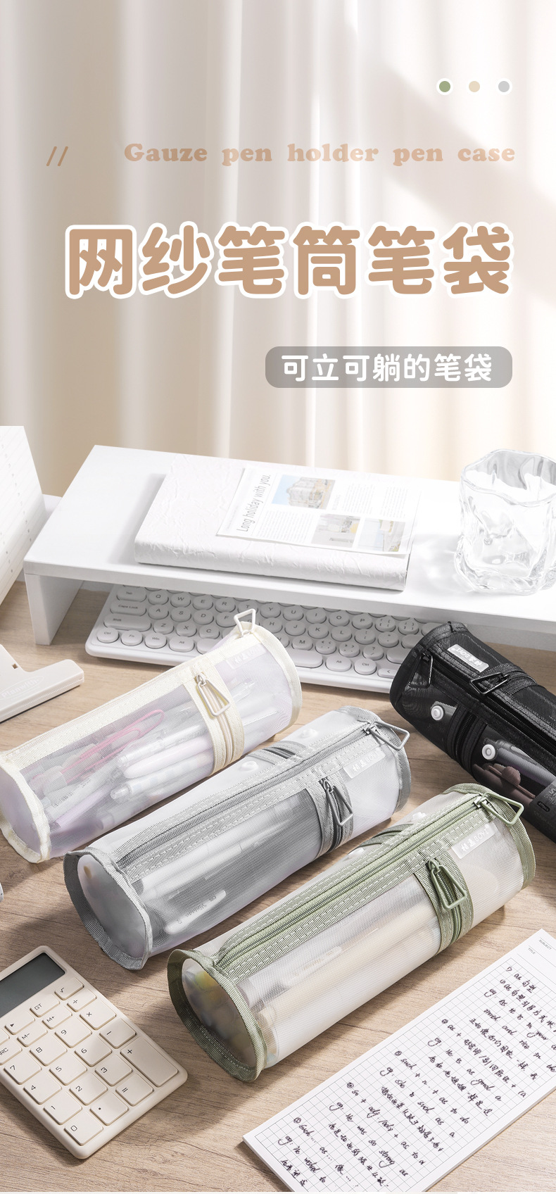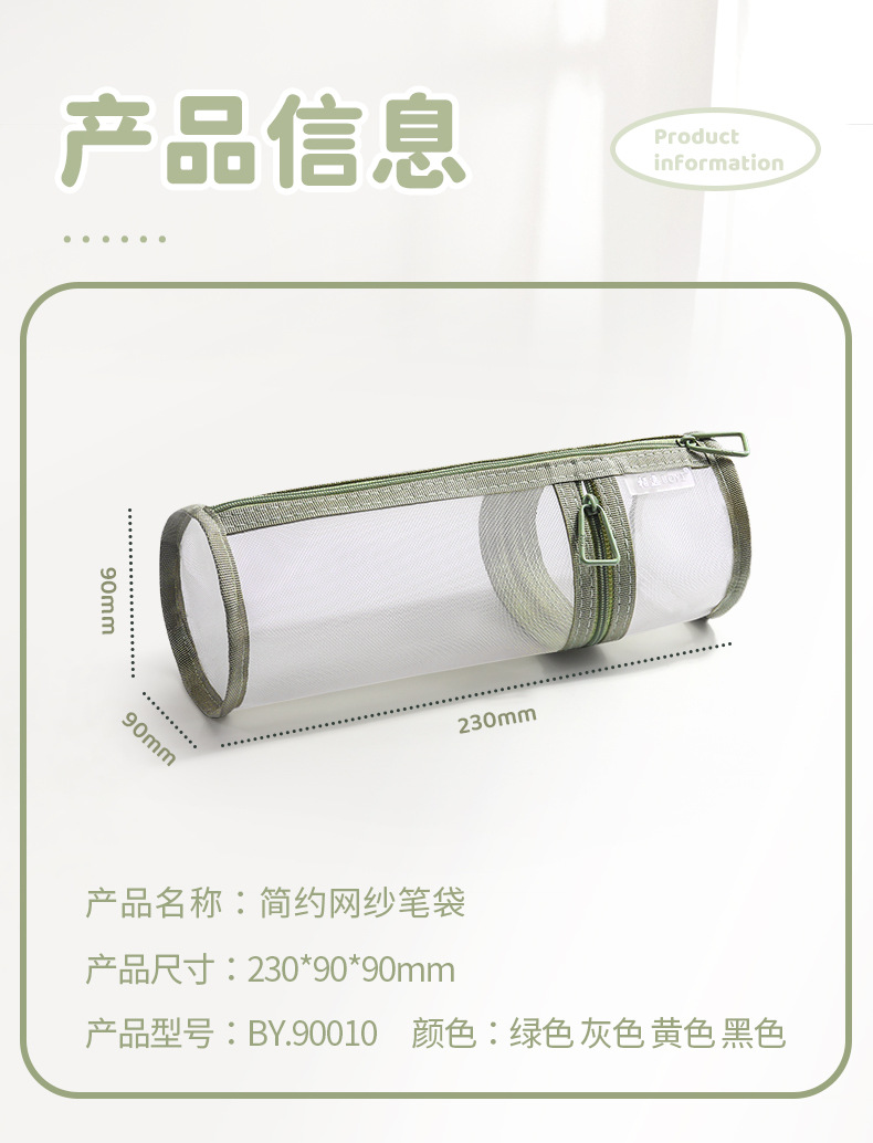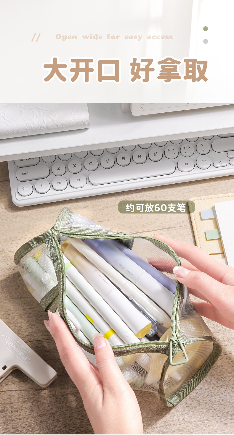Bolsa de lápiz de malla de alto valor facial simple bolsa de papelería transparente gran capacidad bolsa de almacenamiento de papelería de estudiantes