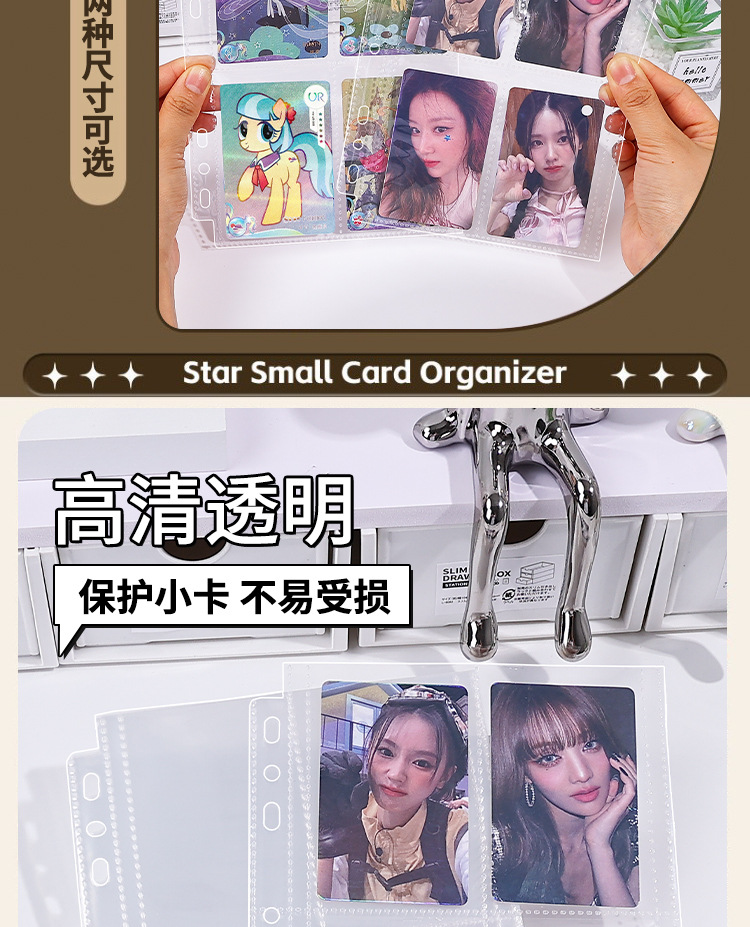 Cuarto libro de tarjetas de alto valor facial Cuarto de tarjetas de 3 pulgadas Cuarto de tarjetas transparente Cuarto de tarjetas de 7 agujeros