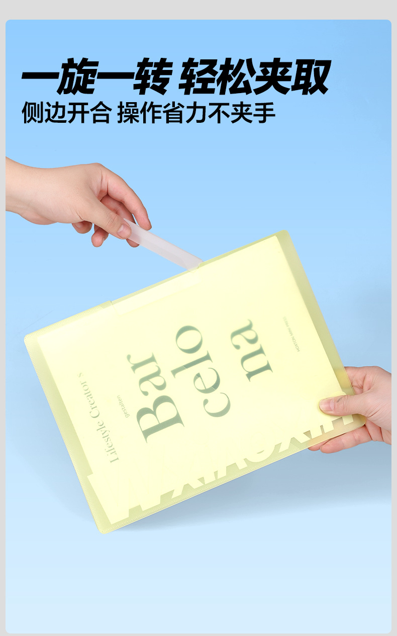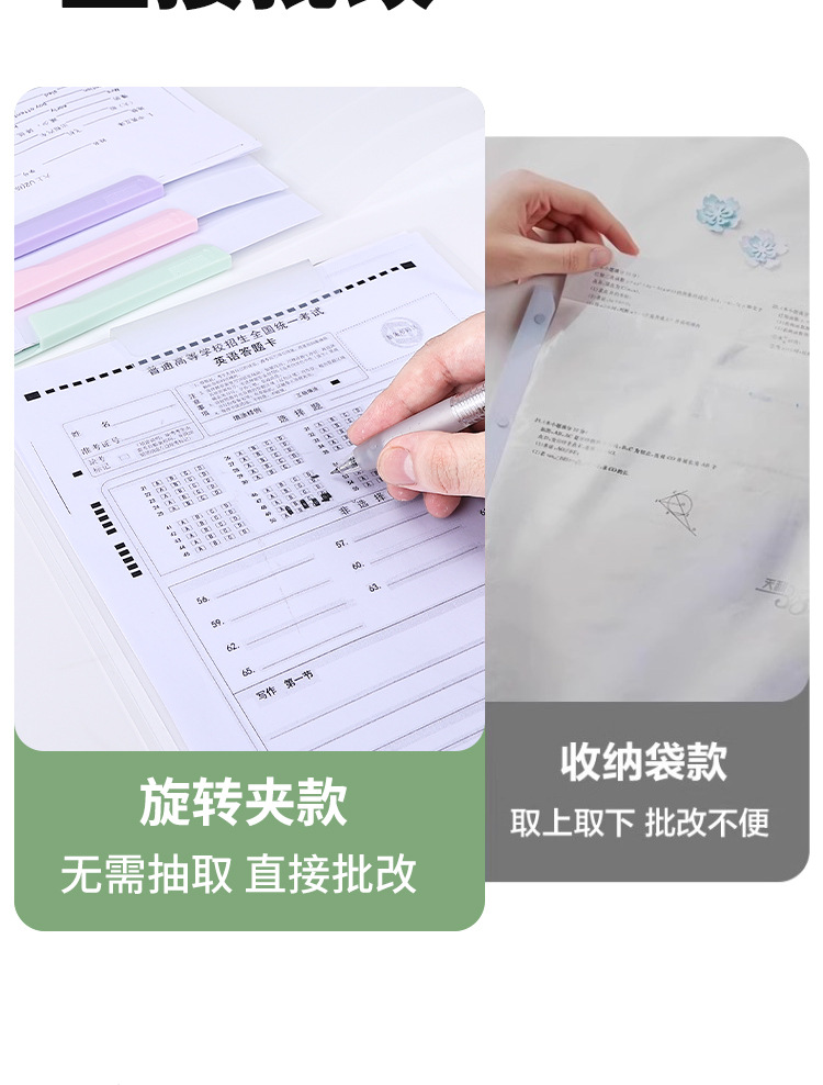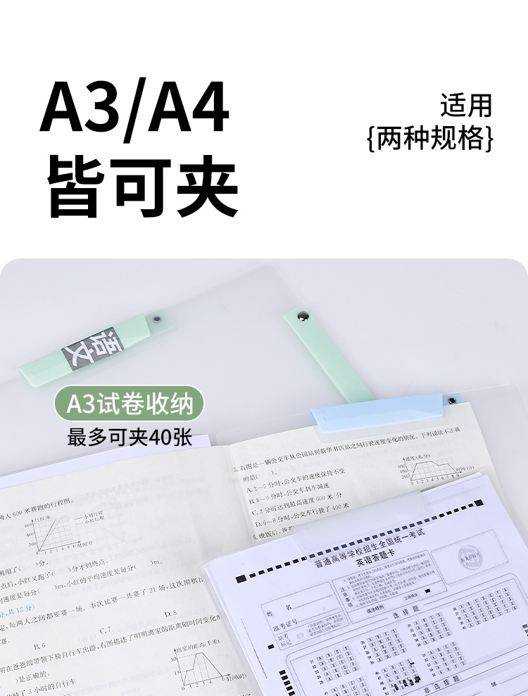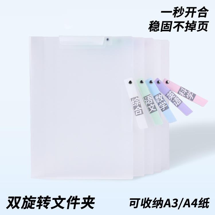 A3 clip de papel de prueba de doble barra de tracción bolsa de almacenamiento para estudiantes carpeta giratoria a4 carpeta de archivo de datos clasificación carpeta giratoria lateral abierta