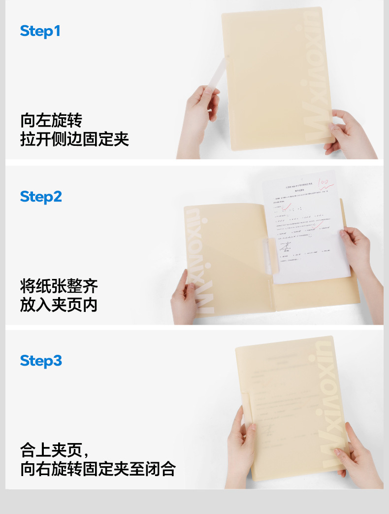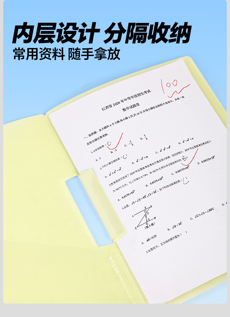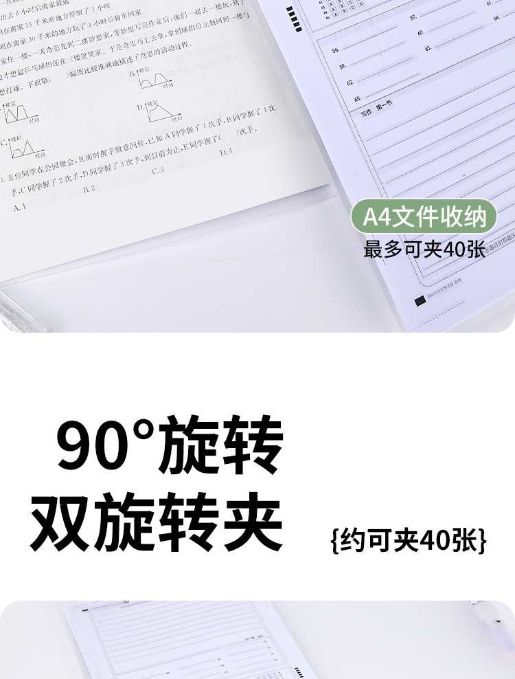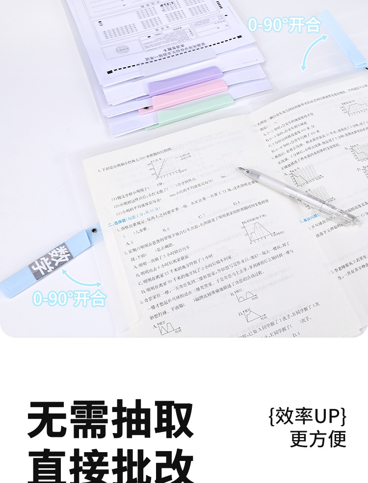 A3 clip de papel de prueba de doble barra de tracción bolsa de almacenamiento para estudiantes carpeta giratoria a4 carpeta de archivo de datos clasificación carpeta giratoria lateral abierta