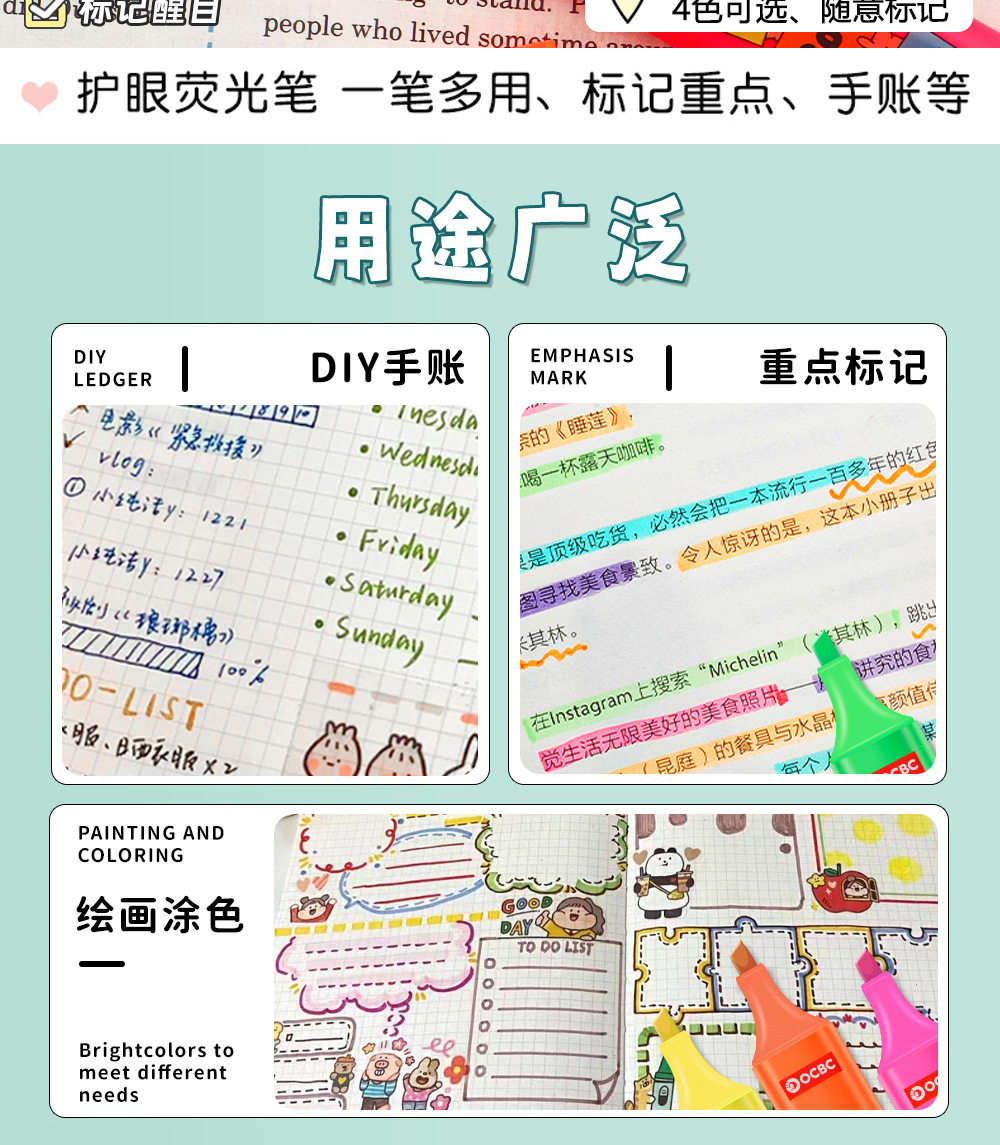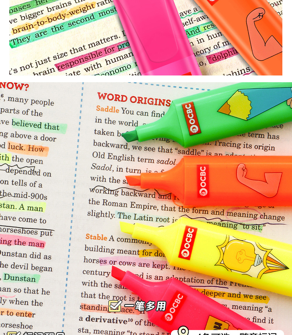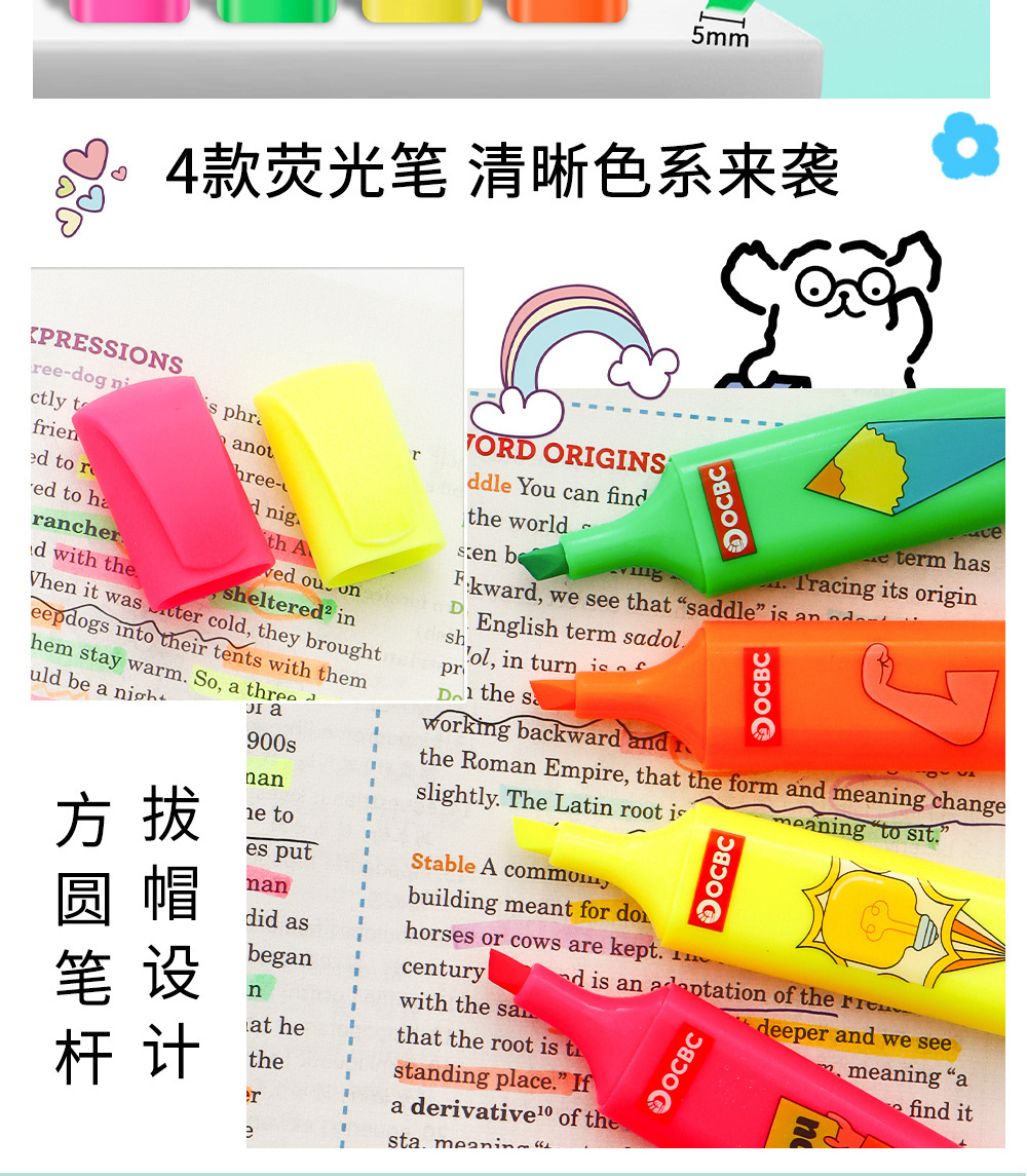 Estudiantes de alta capacidad marcador de puntaje marcador de color fluorescente marcador pluma dibujos animados papelería conjunto mayorista