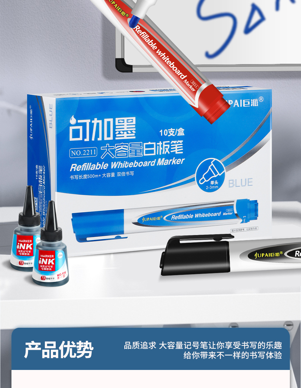 Una gran capacidad de tinta puede agregar lápiz de pizarra fácil de borrar cabeza gruesa tablero de dibujo lápiz de marcado maestro de oficina reunión lápiz de pizarra al por mayor