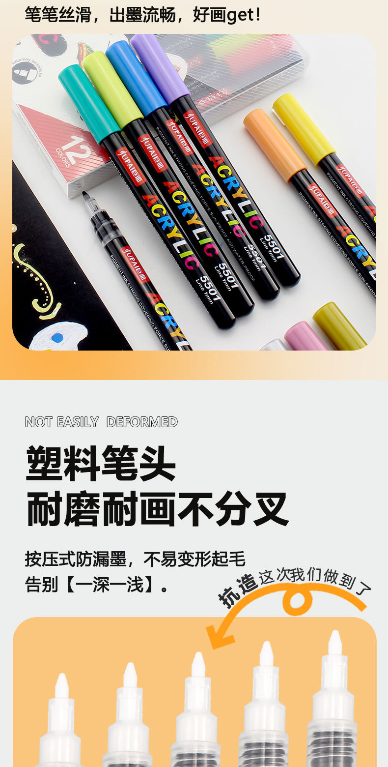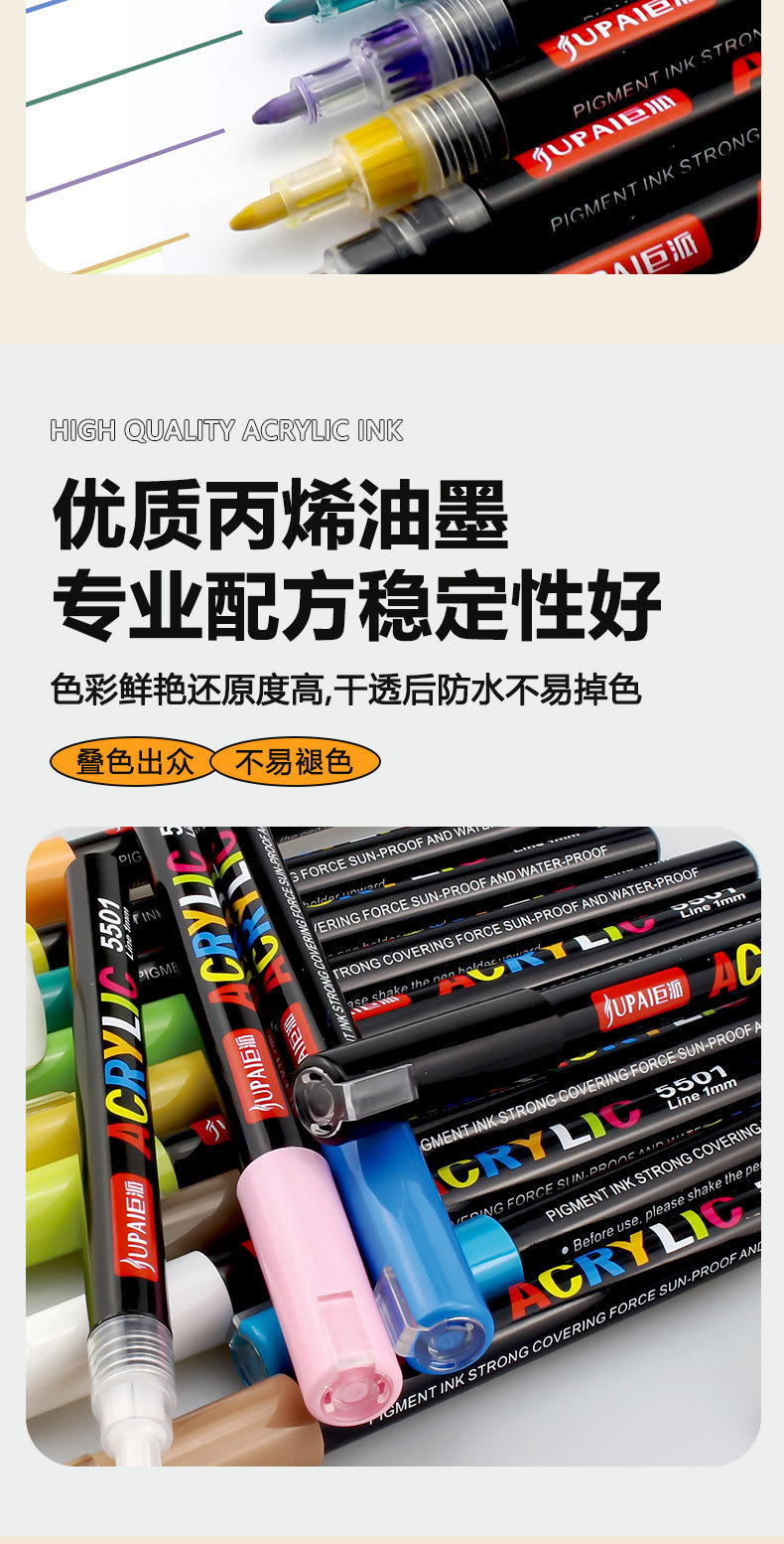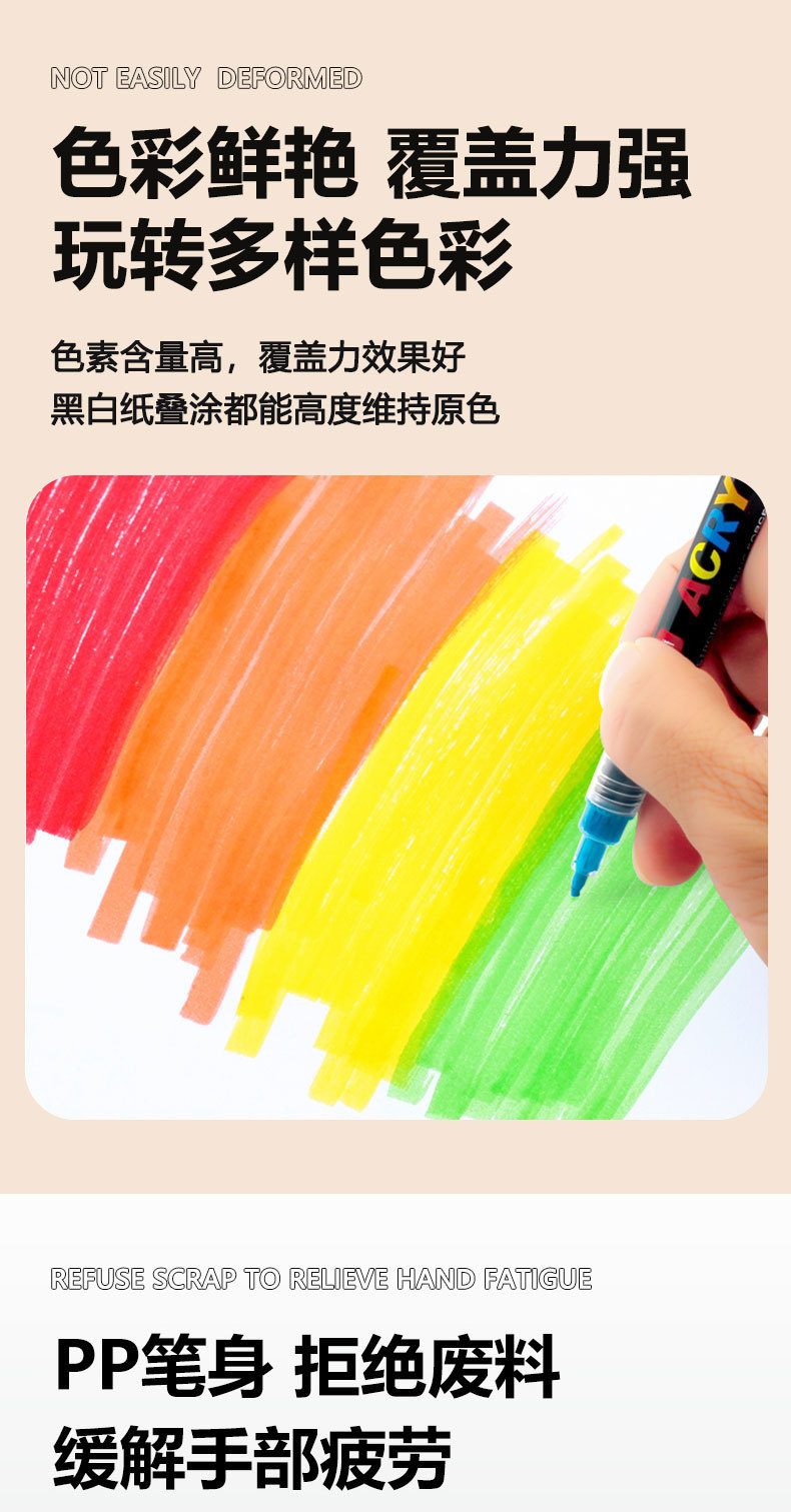 Marcadores de acrílico de tipo directo para estudiantes de primaria, pinceles de pintura para colorear de arte, papel impermeable, bolígrafos de acrílico de colores superpuestos al por mayor