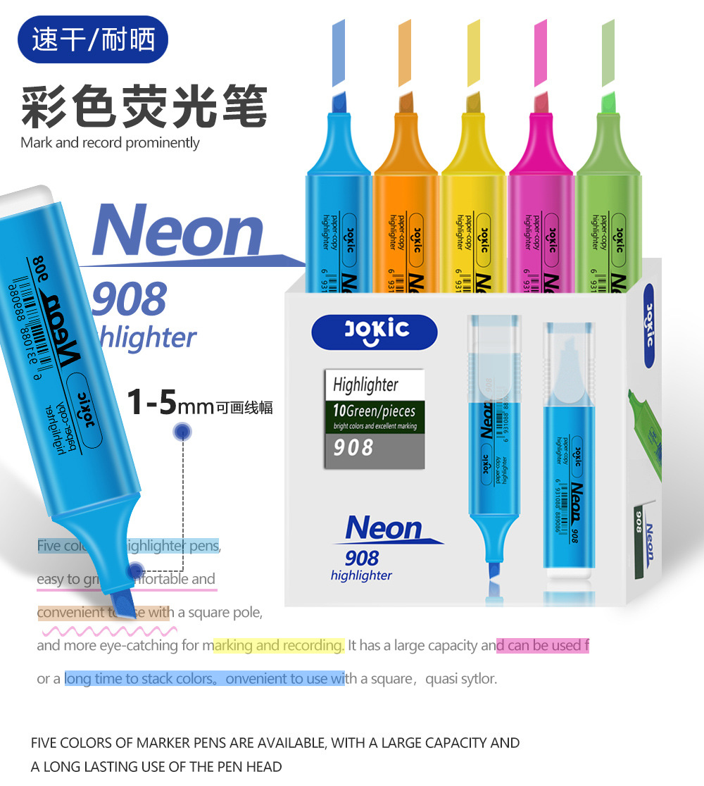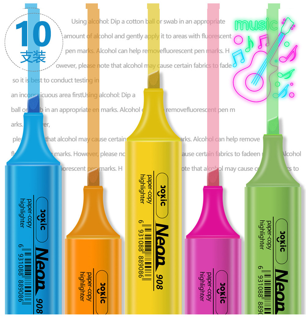 Amazon caliente pen de resaltador pen luminoso de color estudiantes pen de resaltador pen de marca fluorescente de gran capacidad pen