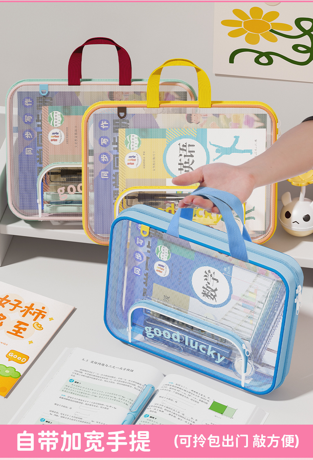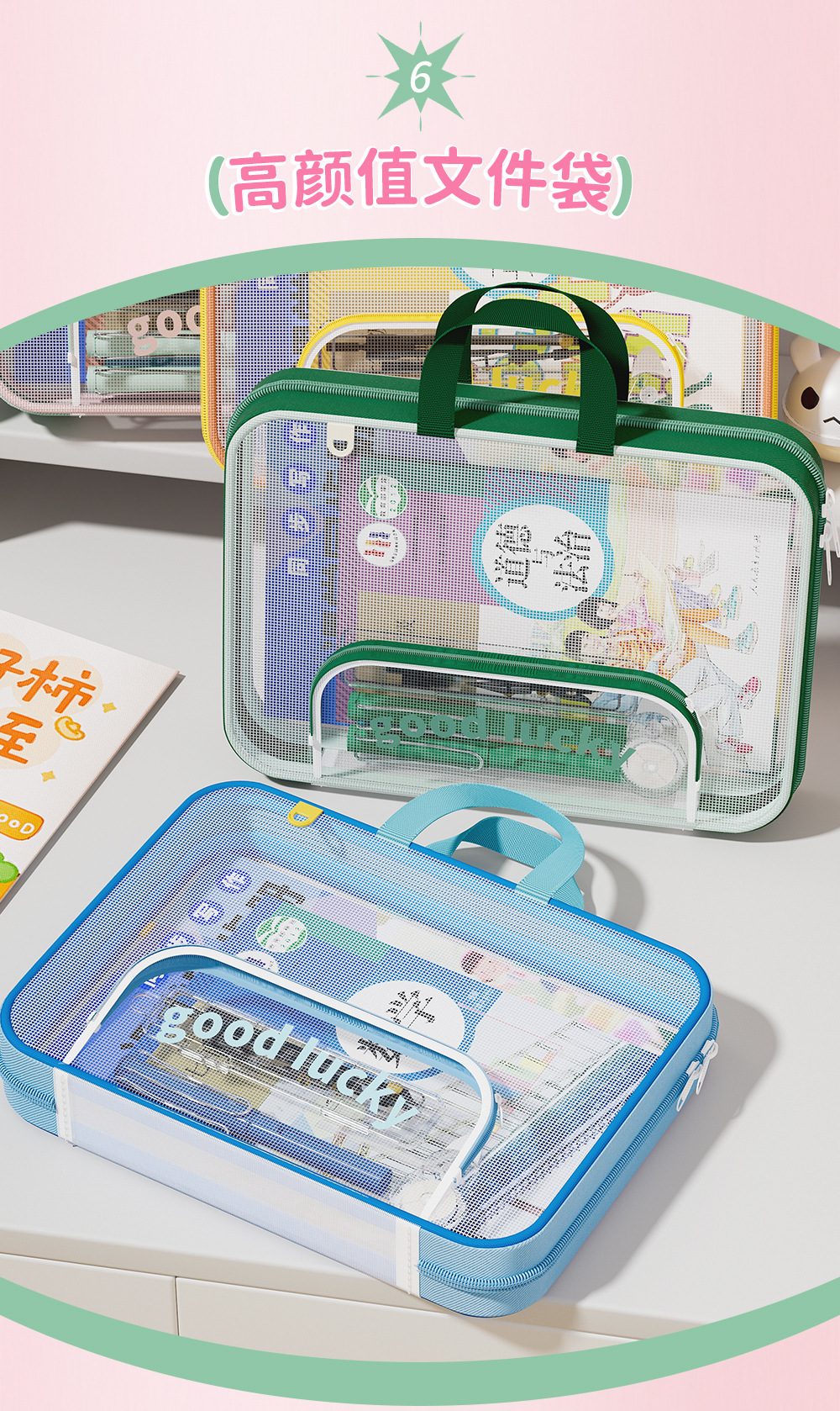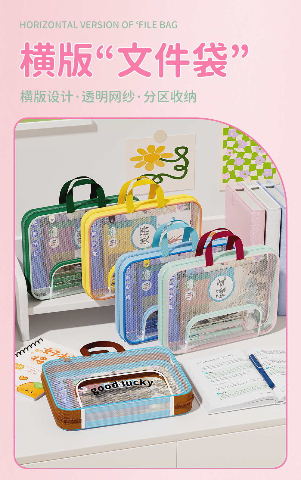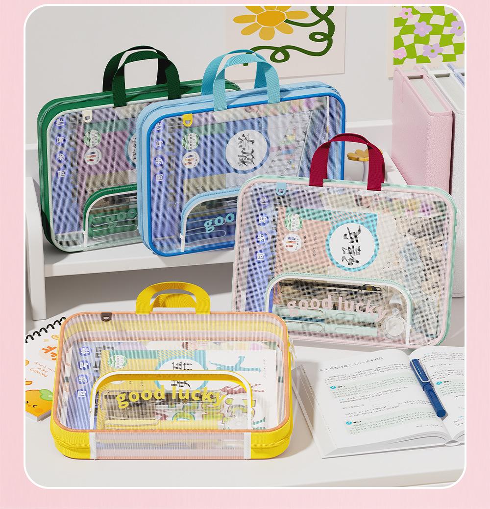 Bolsa de archivo horizontal A4 bolsas de clasificación de sujetos portátiles de alto valor de visualización de gran capacidad bolsa de corrección de cremallera portátil