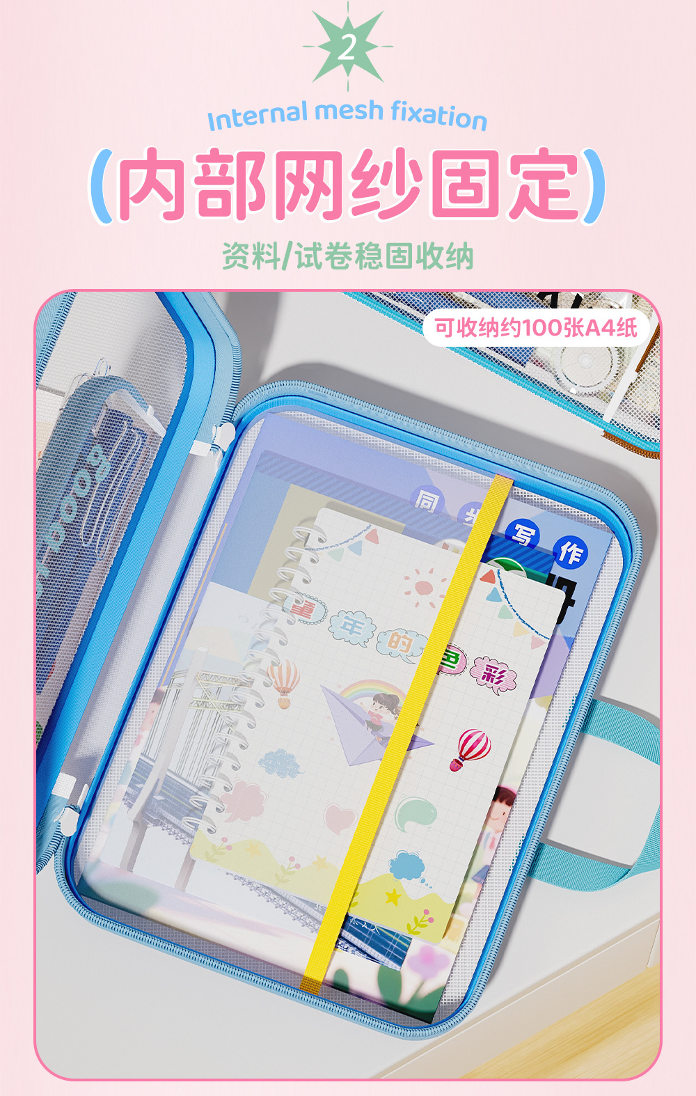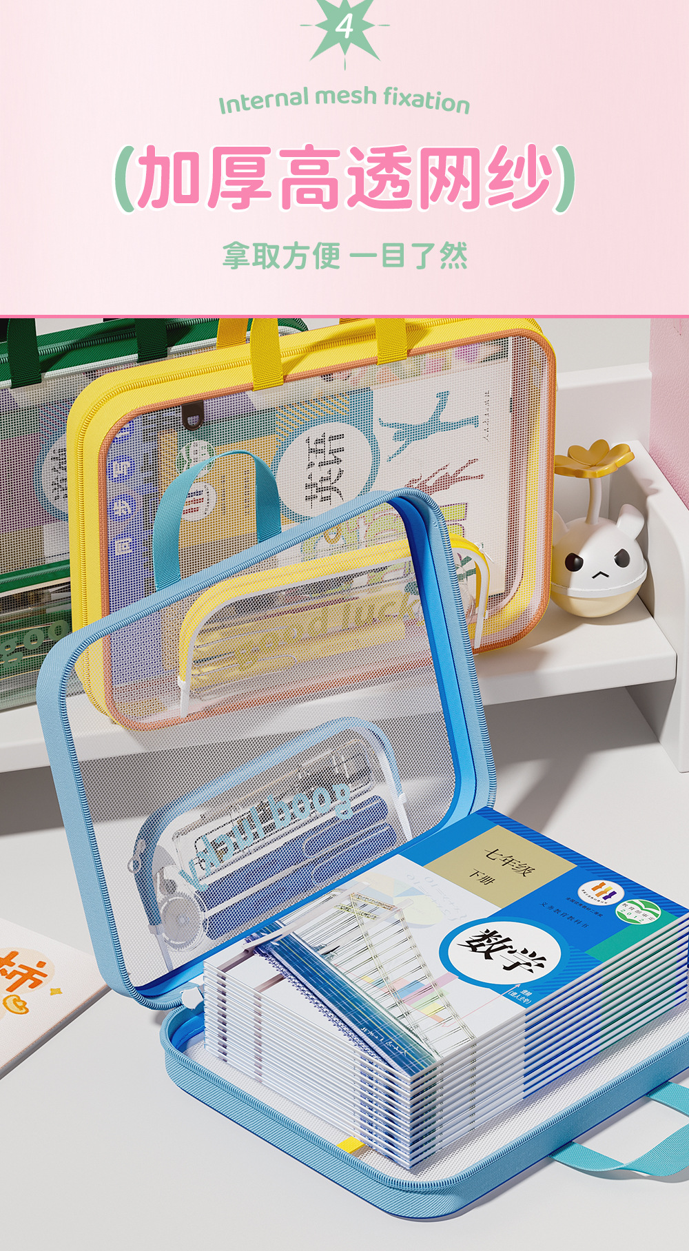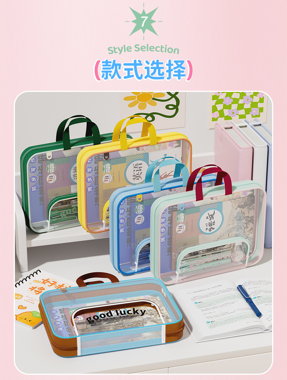 Bolsa de archivo horizontal A4 bolsas de clasificación de sujetos portátiles de alto valor de visualización de gran capacidad bolsa de corrección de cremallera portátil