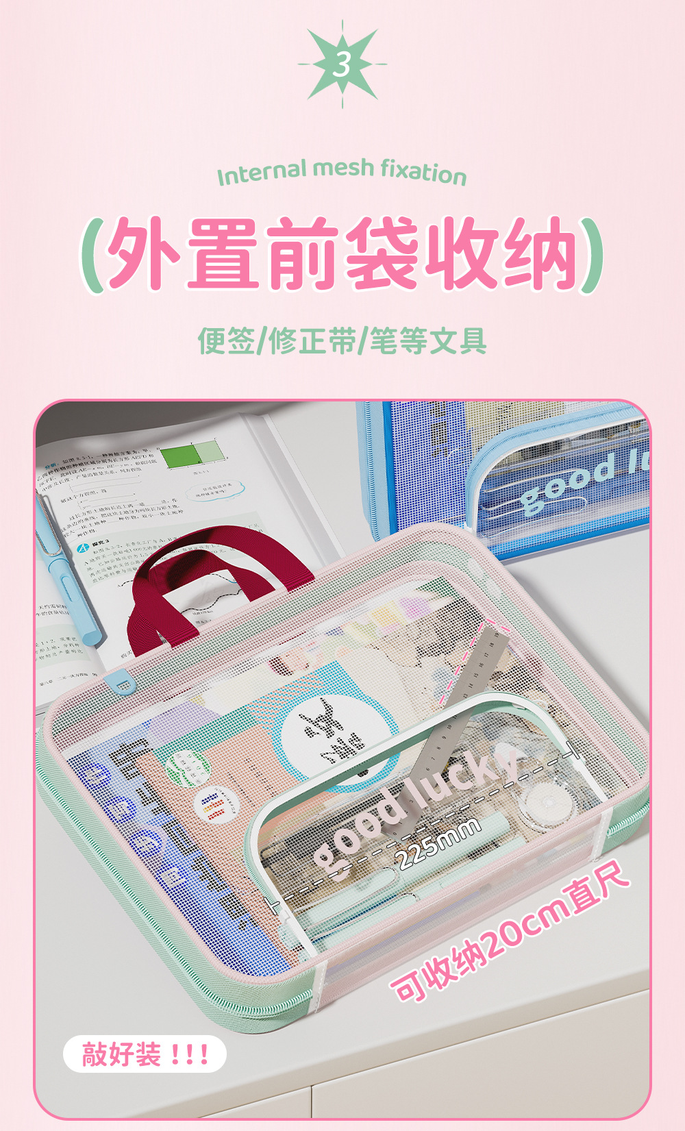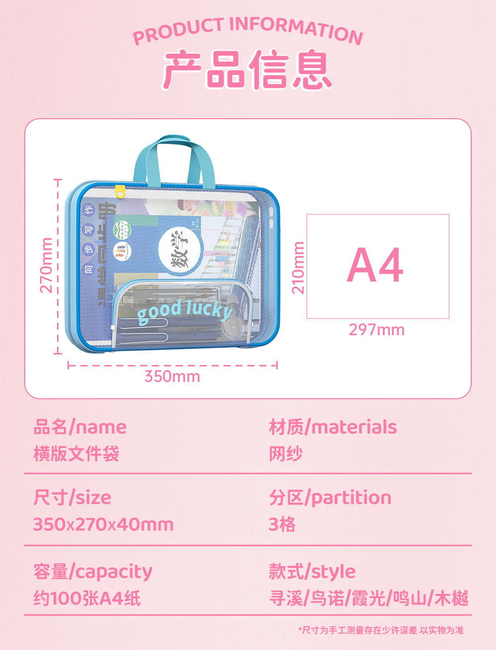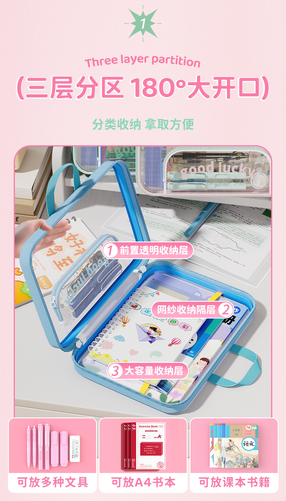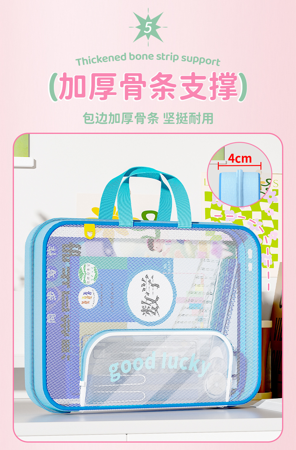 Bolsa de archivo horizontal A4 bolsas de clasificación de sujetos portátiles de alto valor de visualización de gran capacidad bolsa de corrección de cremallera portátil