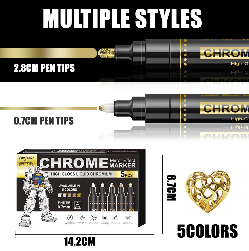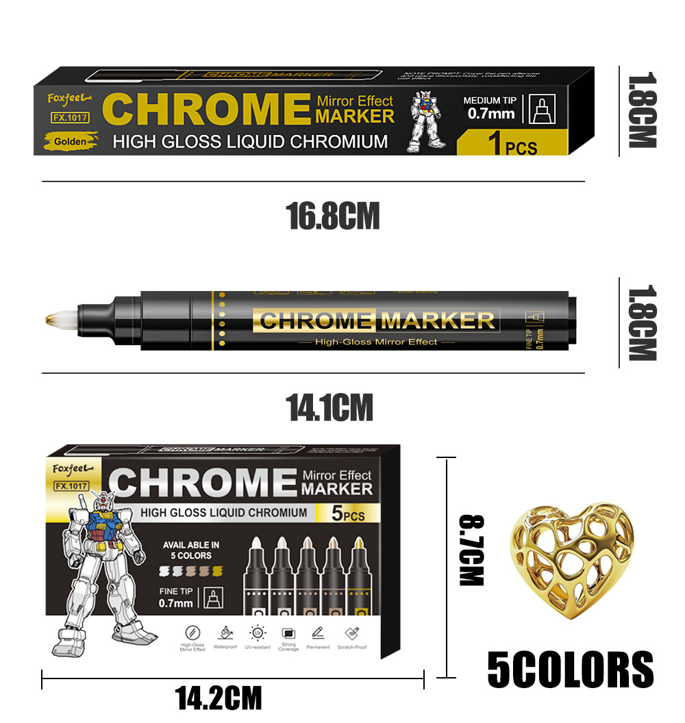 Espejo de 0,7 mm bolígrafo de pintura de oro bolígrafo de cromado bolígrafo de pintura de color modelo de bolígrafo de marca
