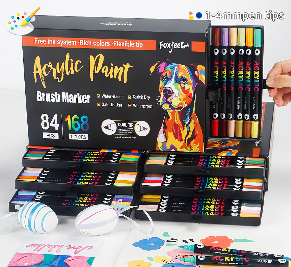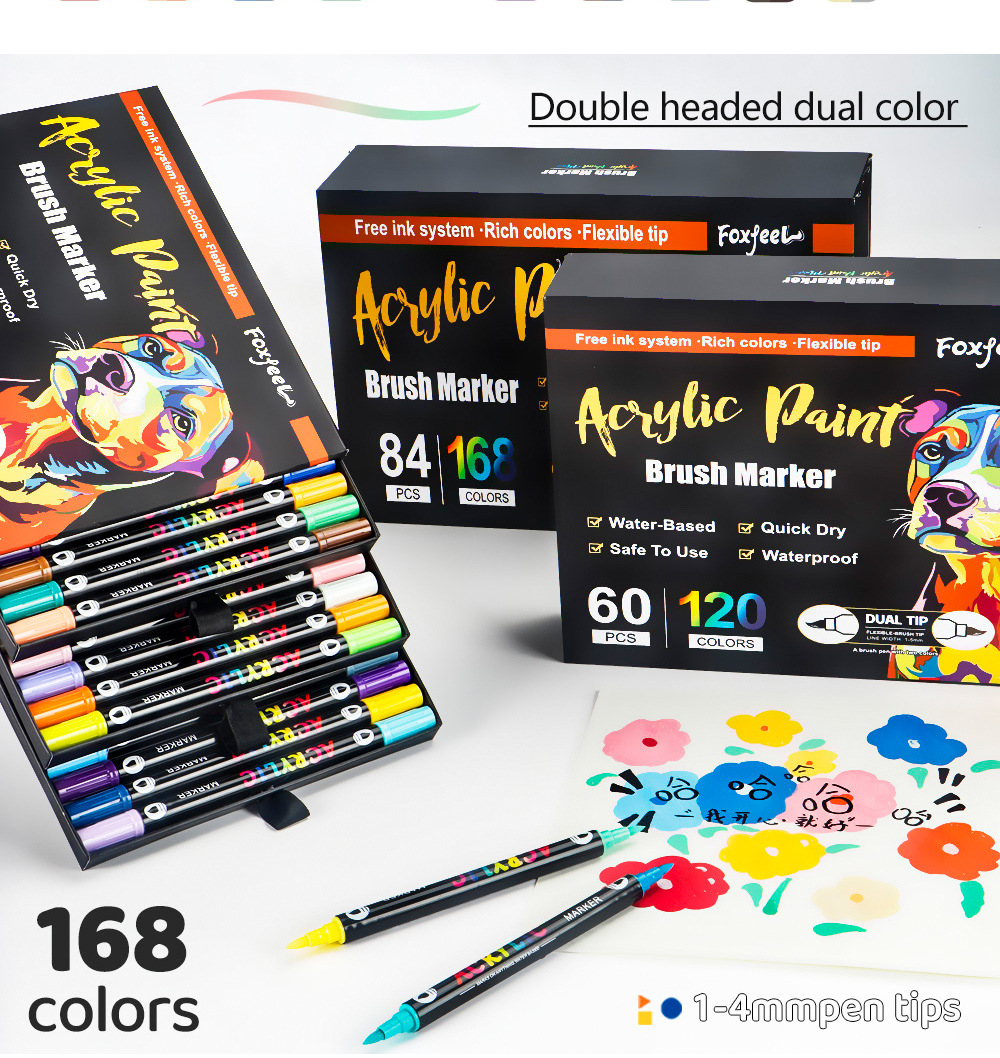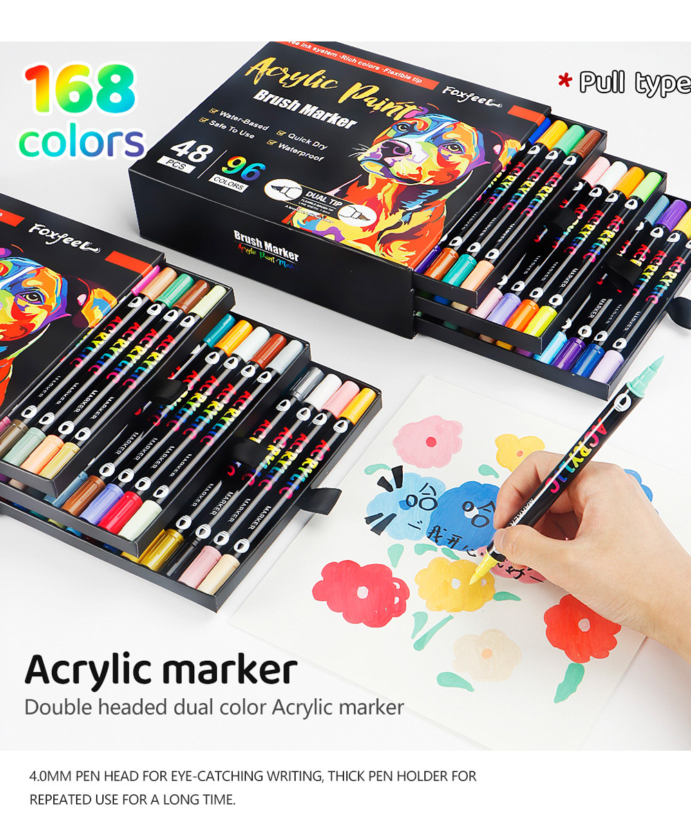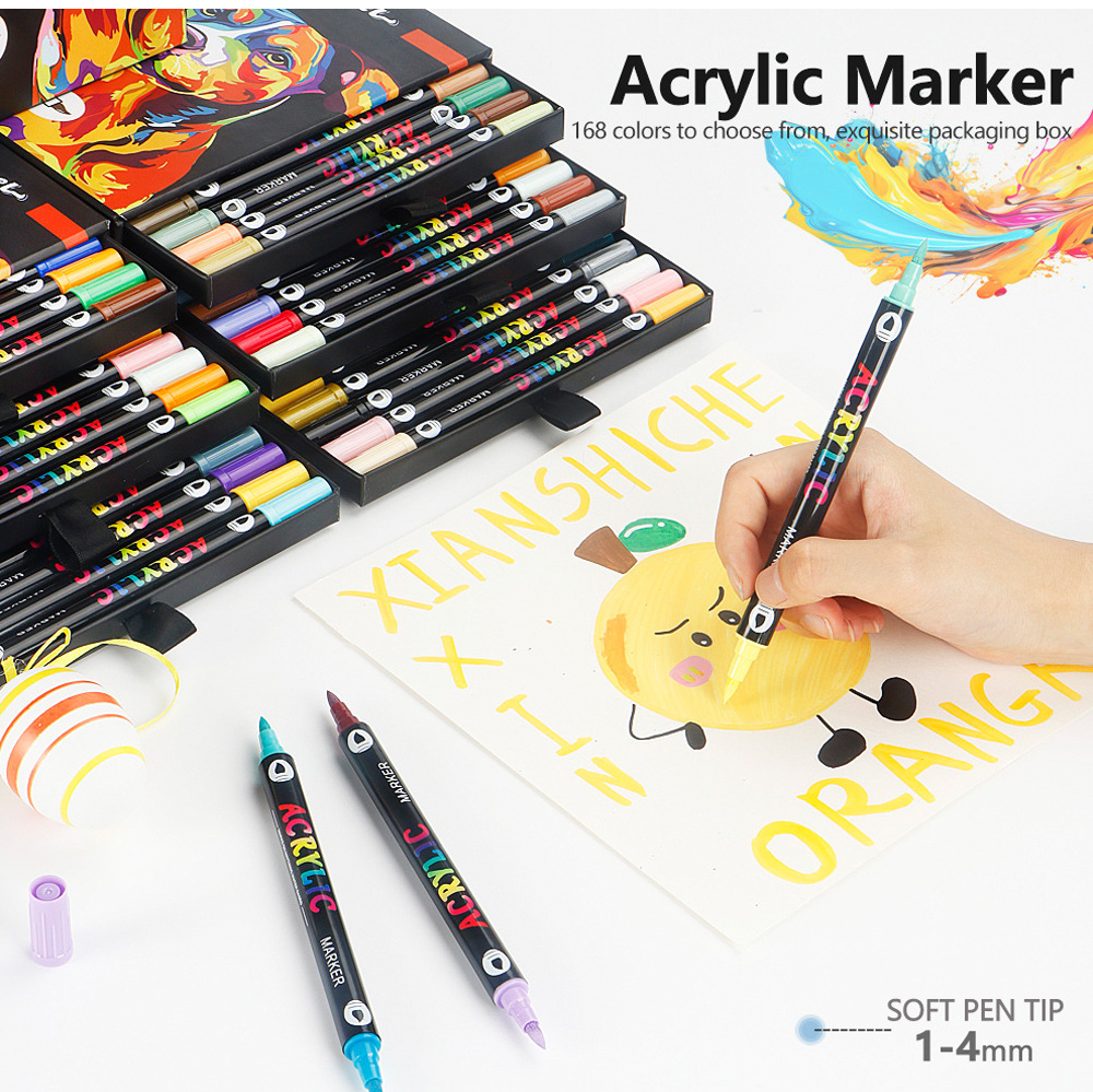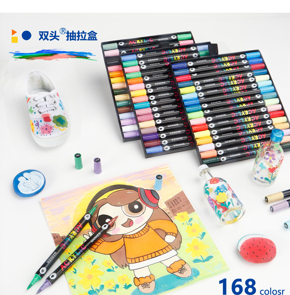 Marcador acrílico de dos colores de dos cabezas Juego de bolígrafos de acuarela de 168 colores