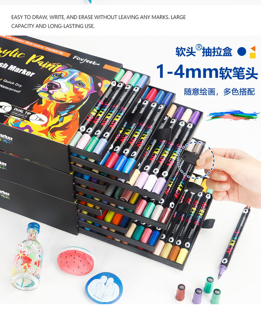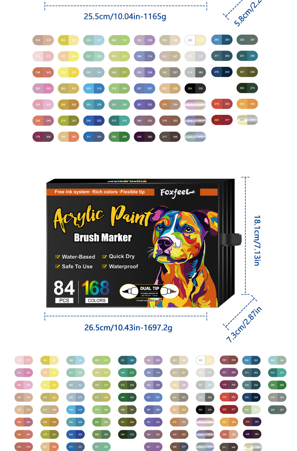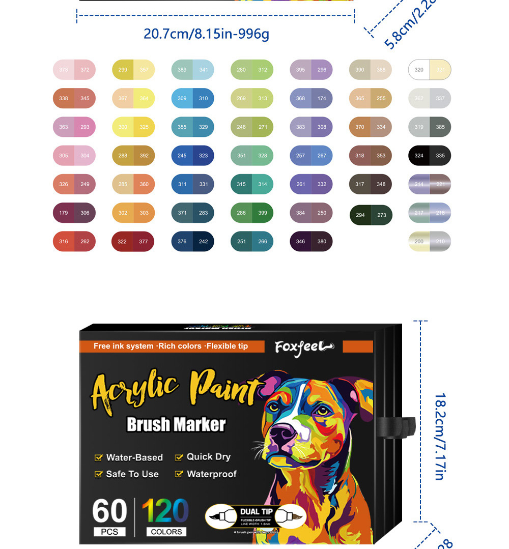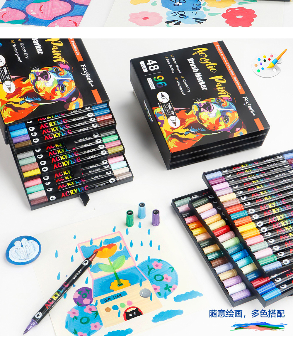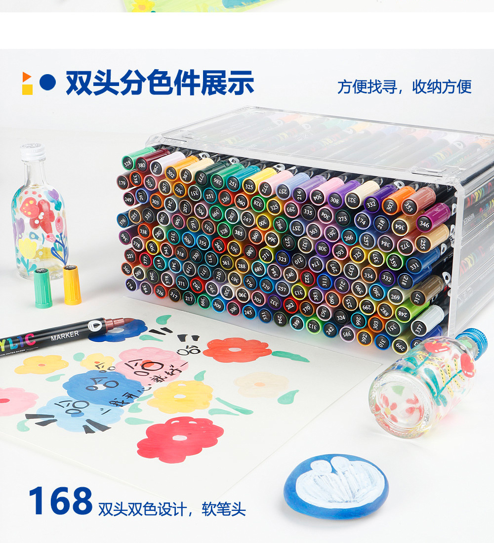Marcador acrílico de dos colores de dos cabezas Juego de bolígrafos de acuarela de 168 colores