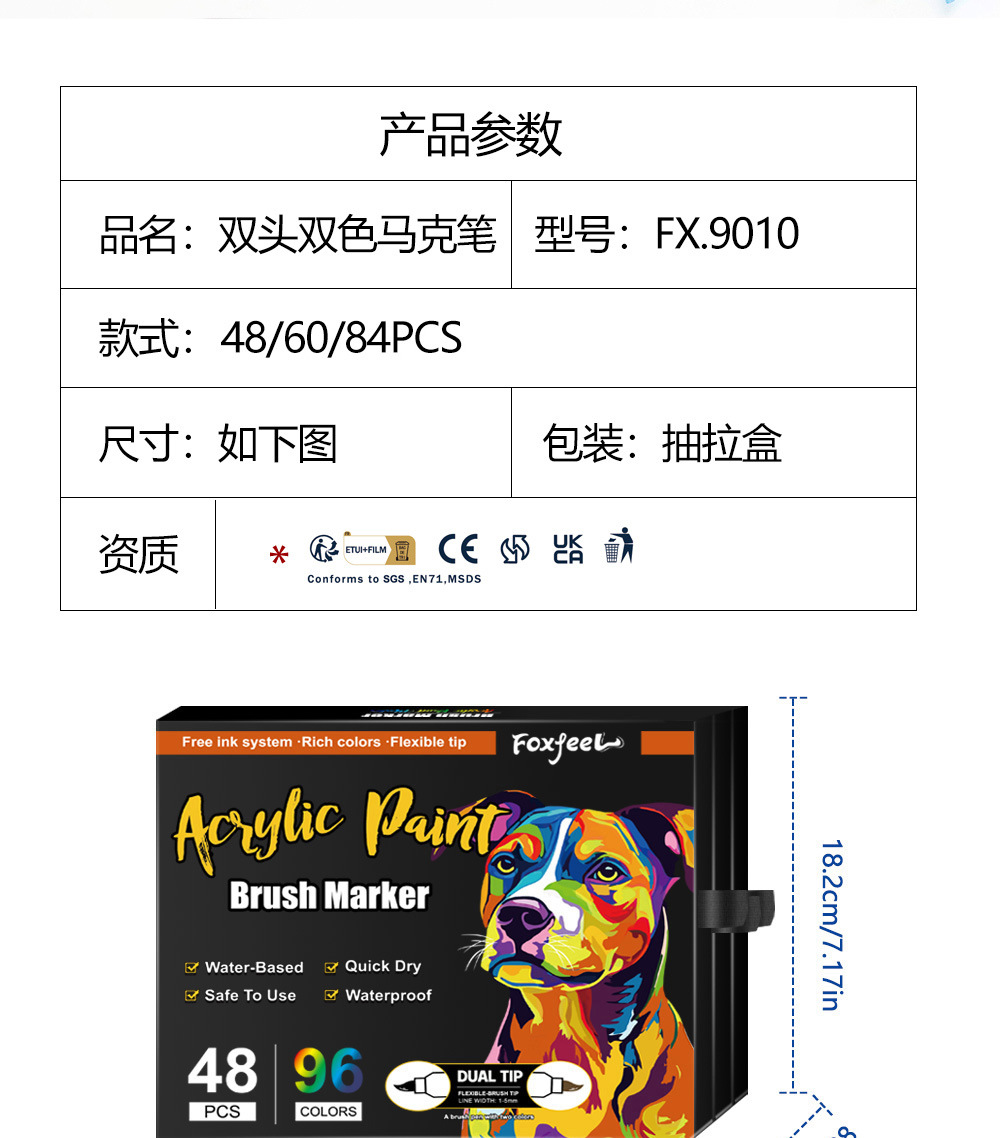 | Especificaciones | Juego de 48 piezas/96 colores,Juego de 60 piezas/120 colores,84 piezas/168 colores |