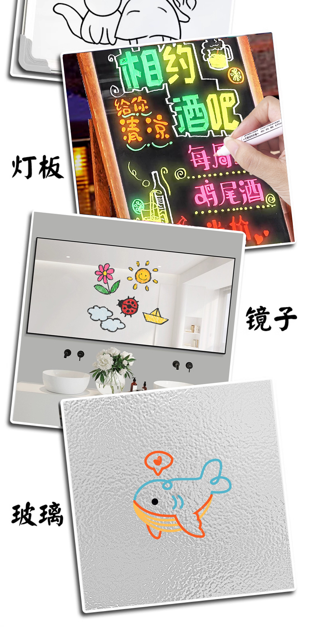 Lápiz de pastel líquido borrable transfronterizo fácil de escribir lápiz de vidrio de colores borrable lápiz de lámpara LED lápiz de placa fluorescente lápiz especial