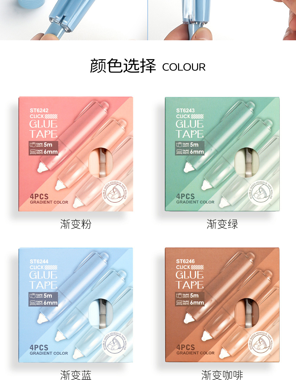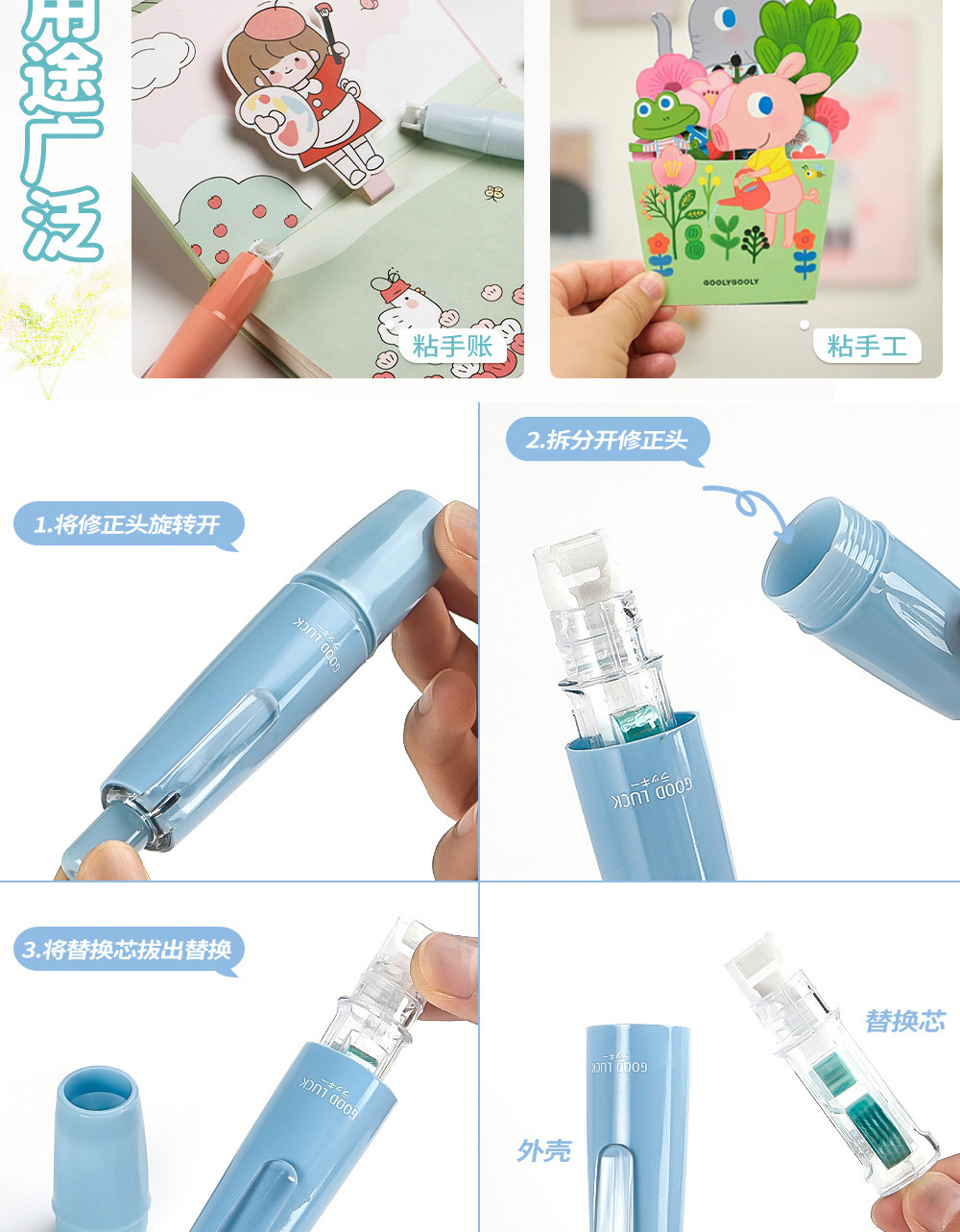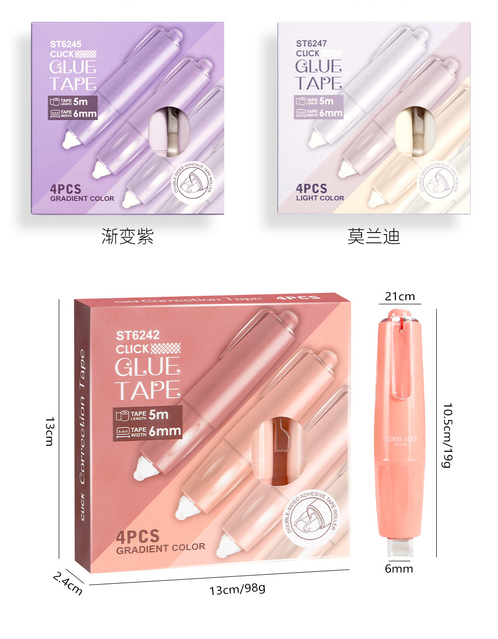 Corrección de núcleo reemplazable de alto valor, con forma de bolígrafo de color degradado, corrección de doble cara de doble cara con estilo lindo